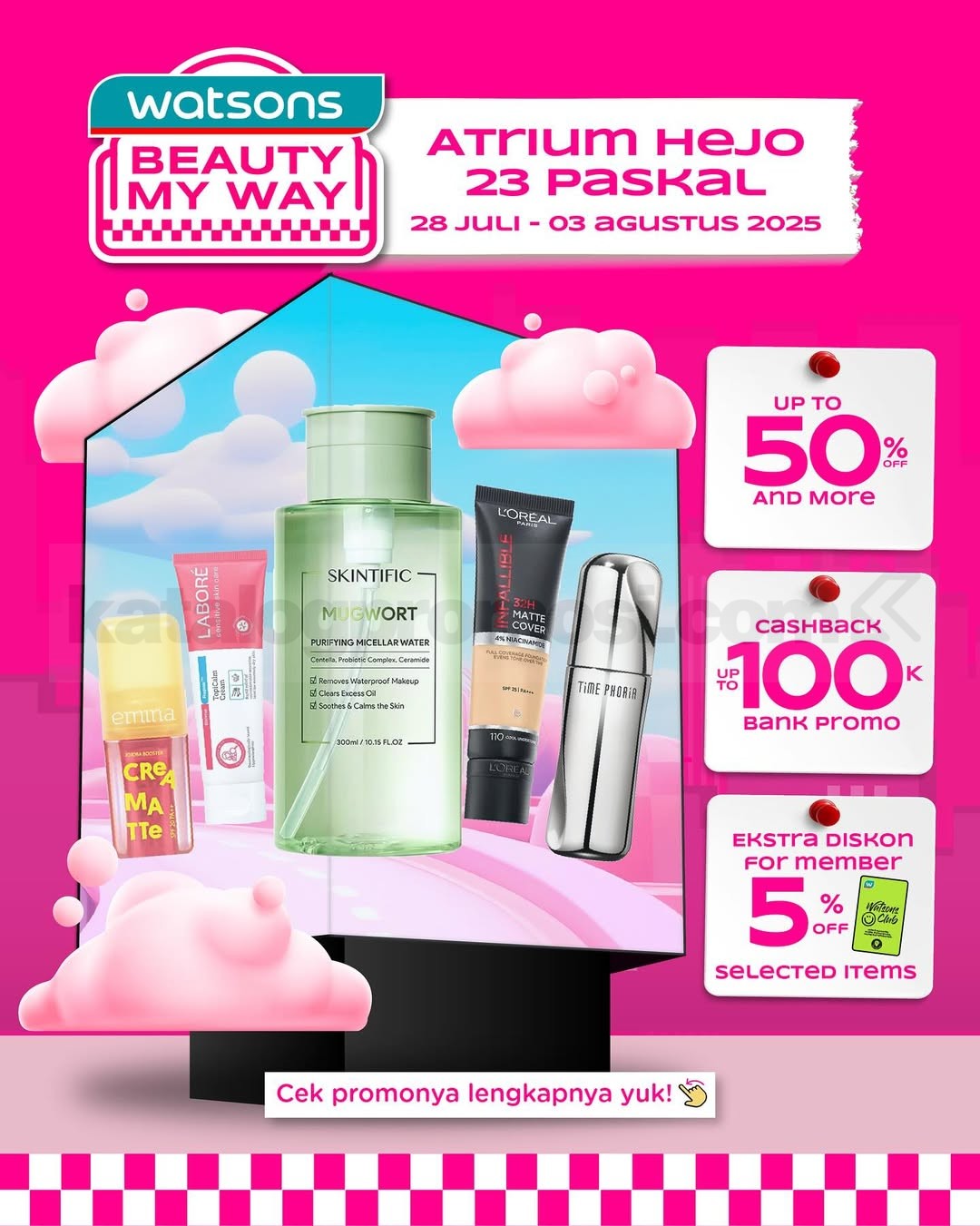 Promo Watsons Beauty My Way Diskon hingga 50% + 5%.