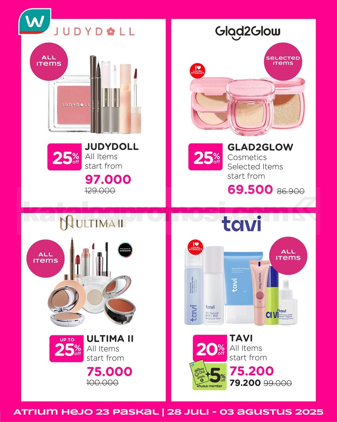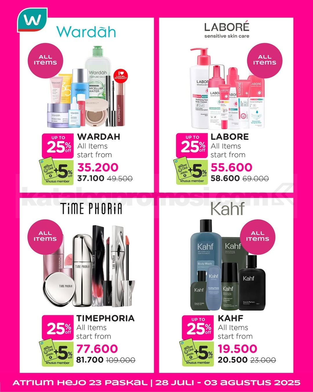 Untuk member Watsons, ada ekstra diskon 5% biar belanja makin asik. Fun games seru dengan hadiah kece juga menanti. Dari skincare, makeup, sampai tips kecantikan, semua ada di sini buat bikin hari kamu makin glowing dan stylish! ✨💄
