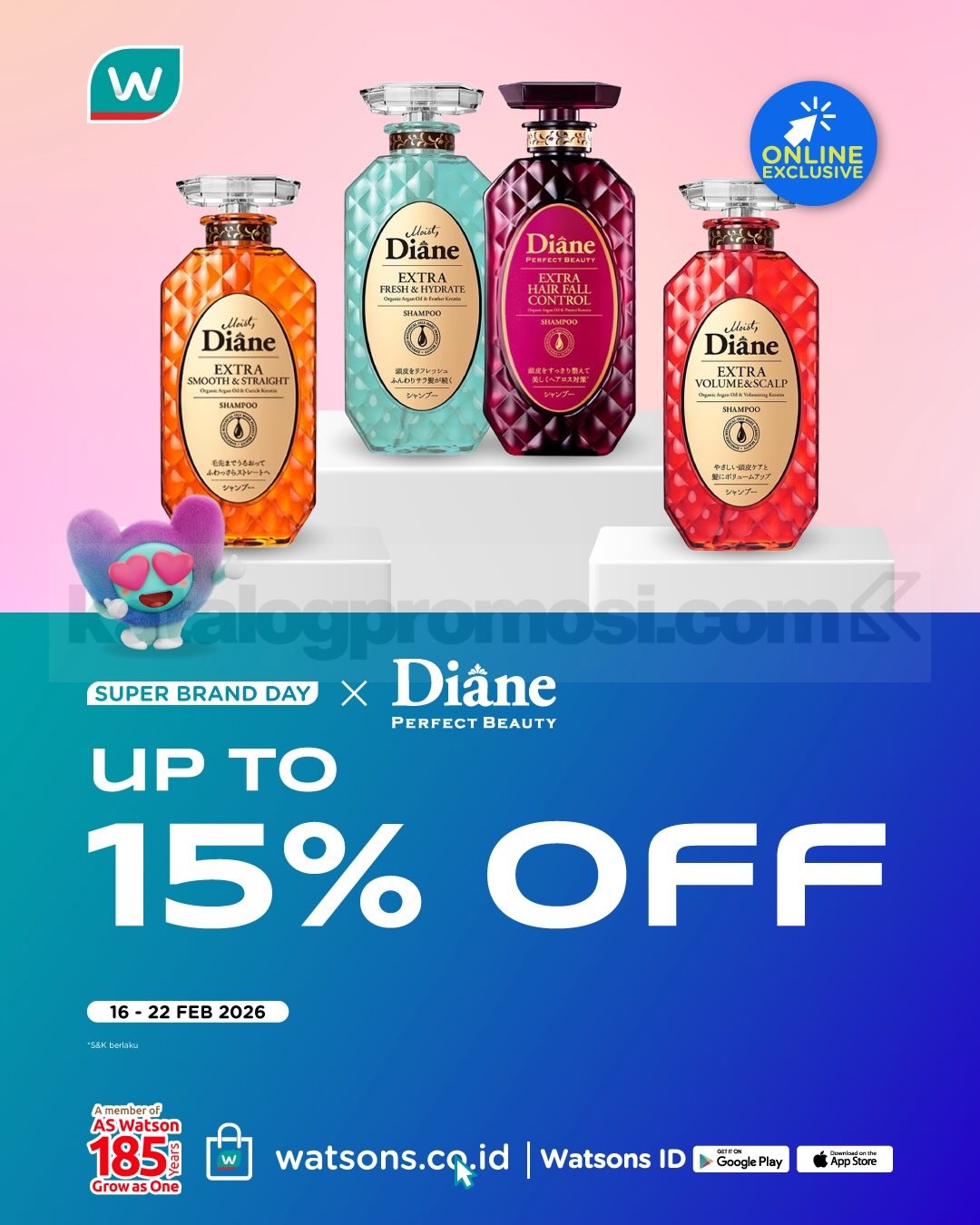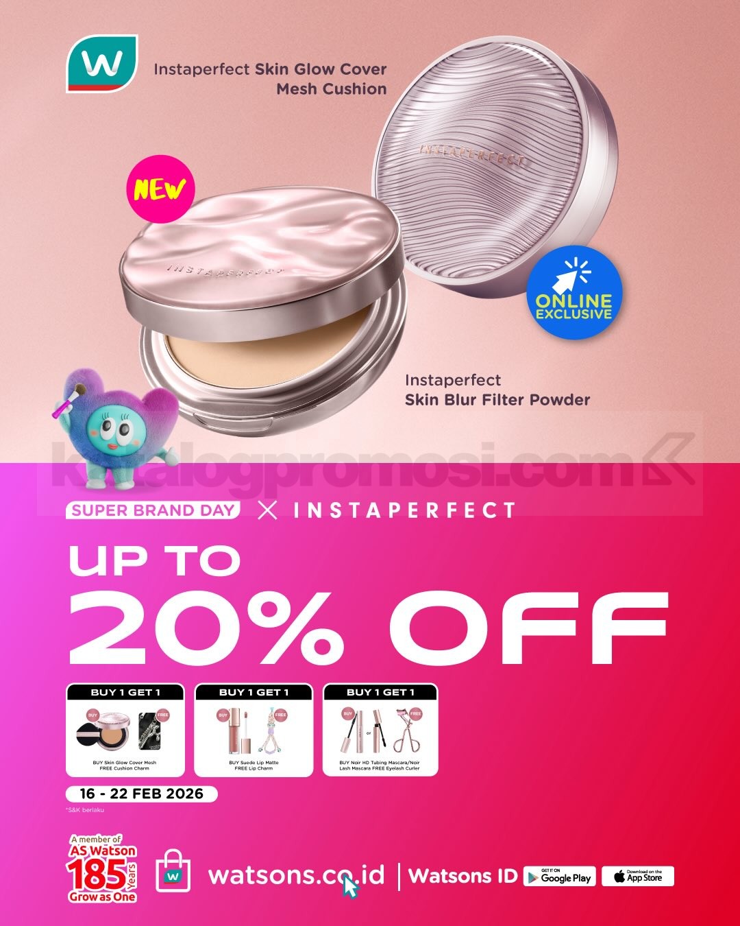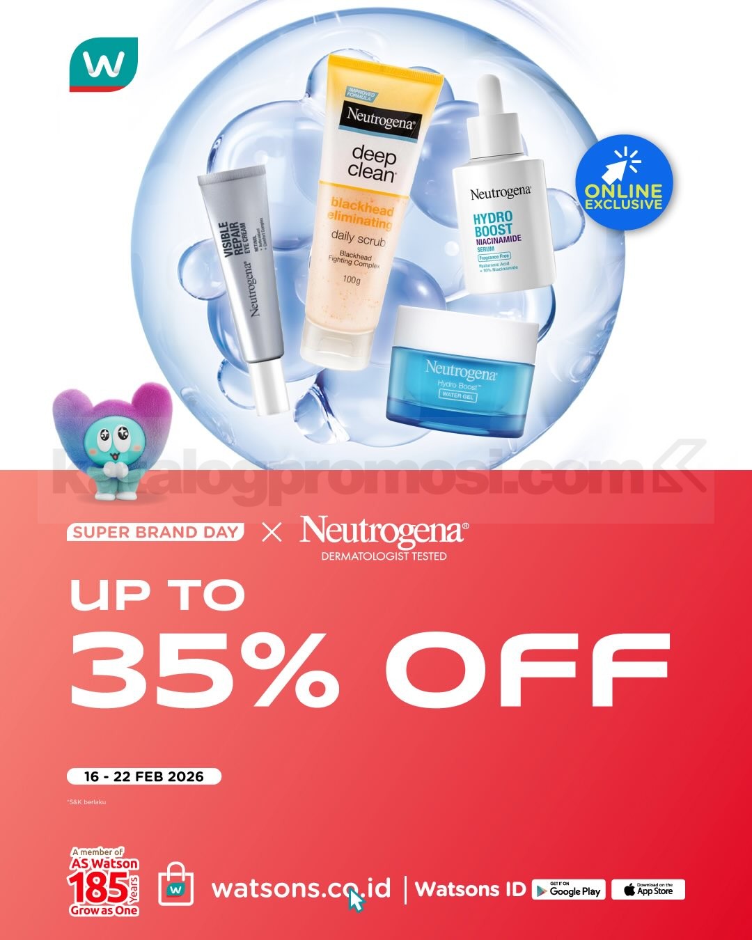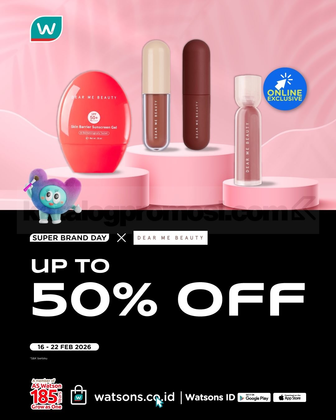 Promo Watsons Super Brand Day Diskon 50% + extra voucher & gratis ongkir belanja skincare dan makeup berlaku 16 Februari 2026 – 22 Februari 2026 secara online.