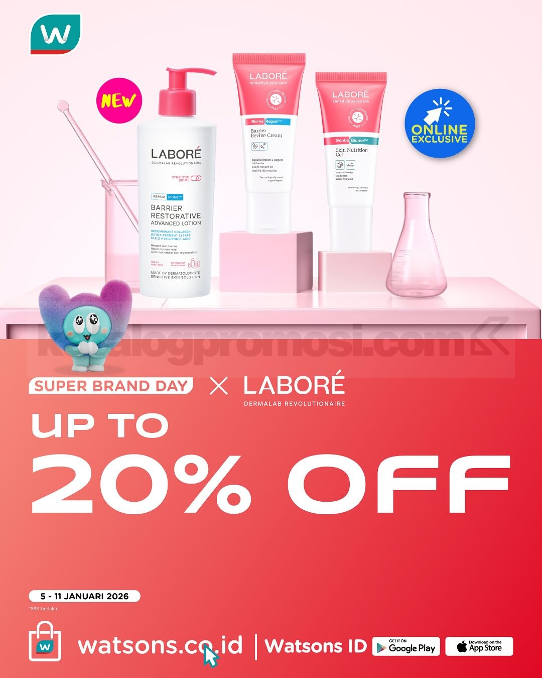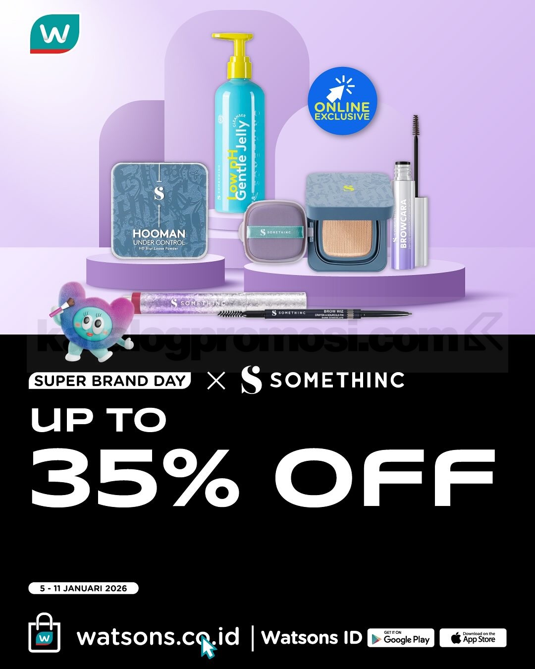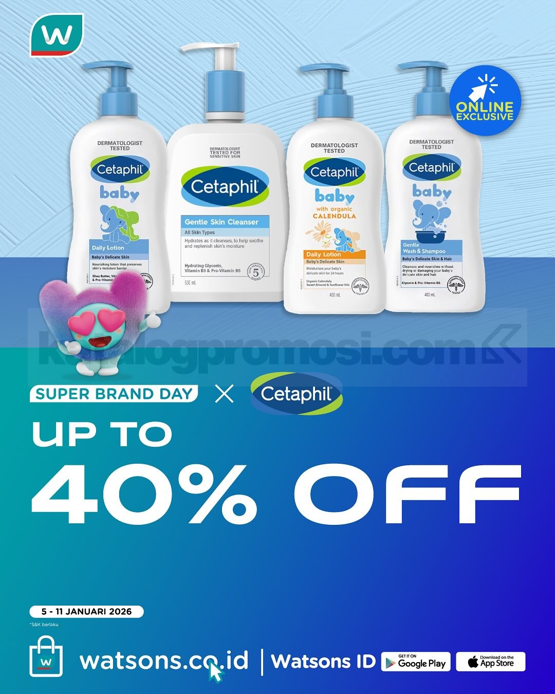 Promo Watsons Super Brand Day Somethinc Labore Cetaphil diskon hingga 40% belanja online dengan benefit menarik berlaku mulai tanggal 5 Januari 2026 – 11 Januari 2026.