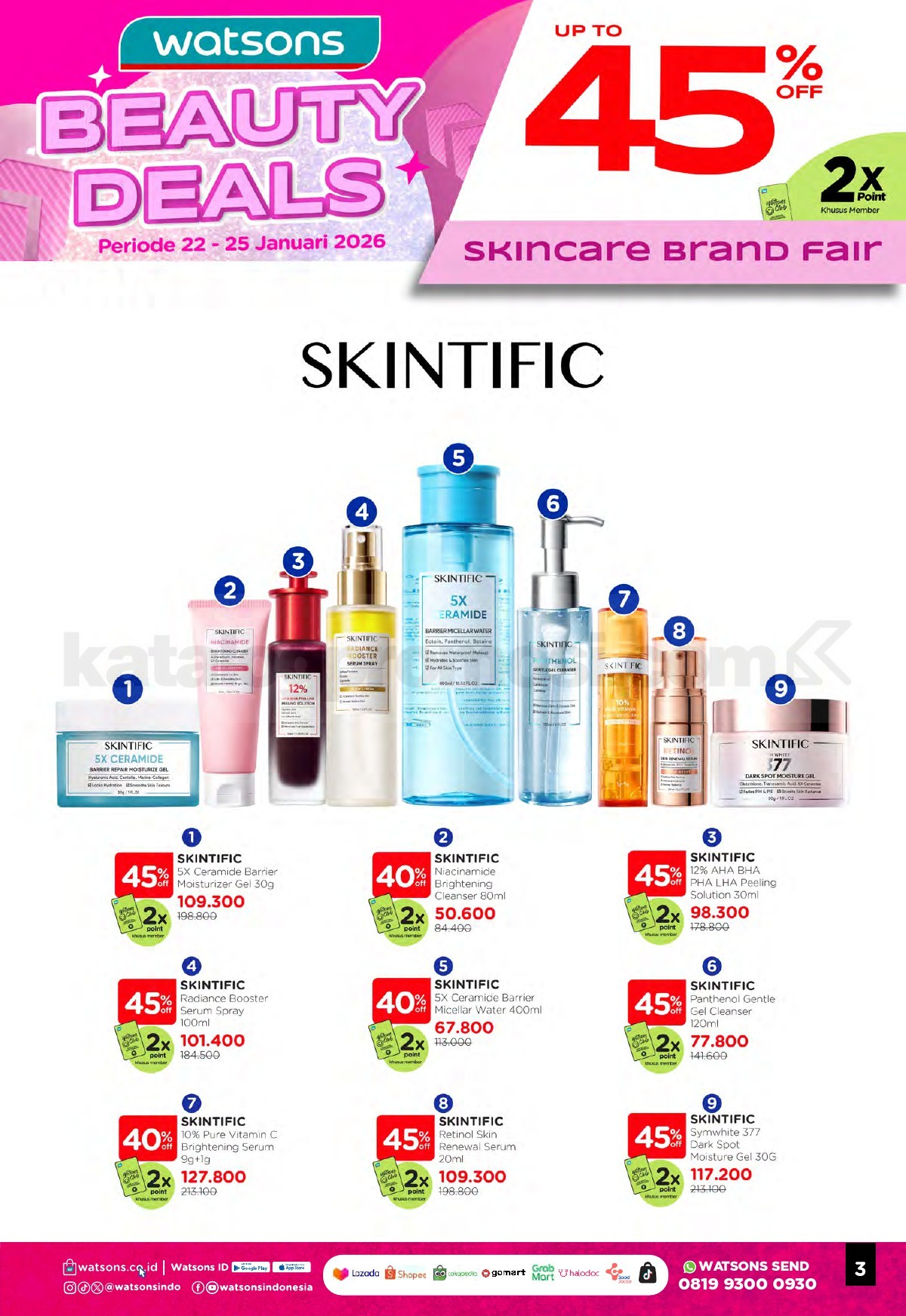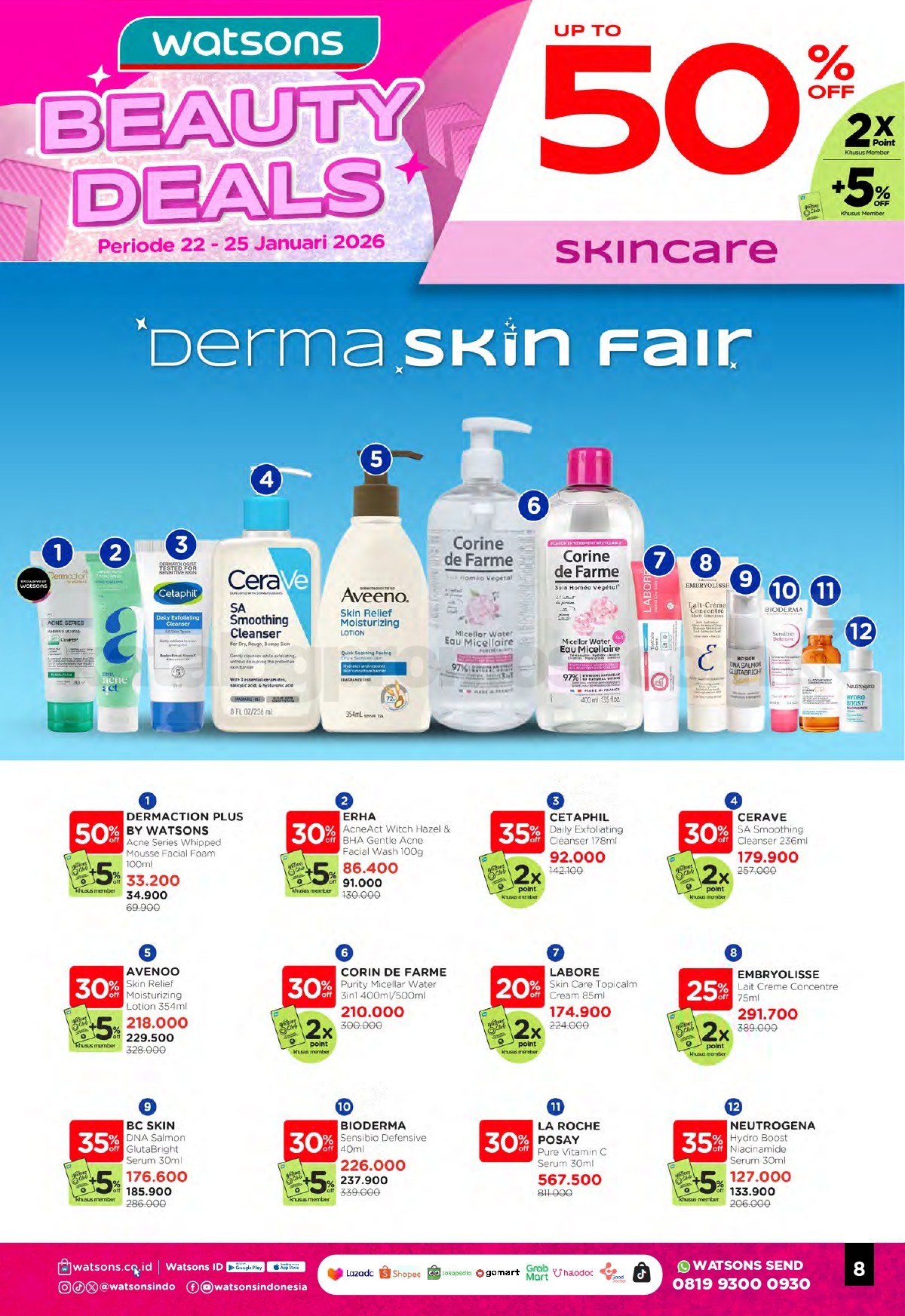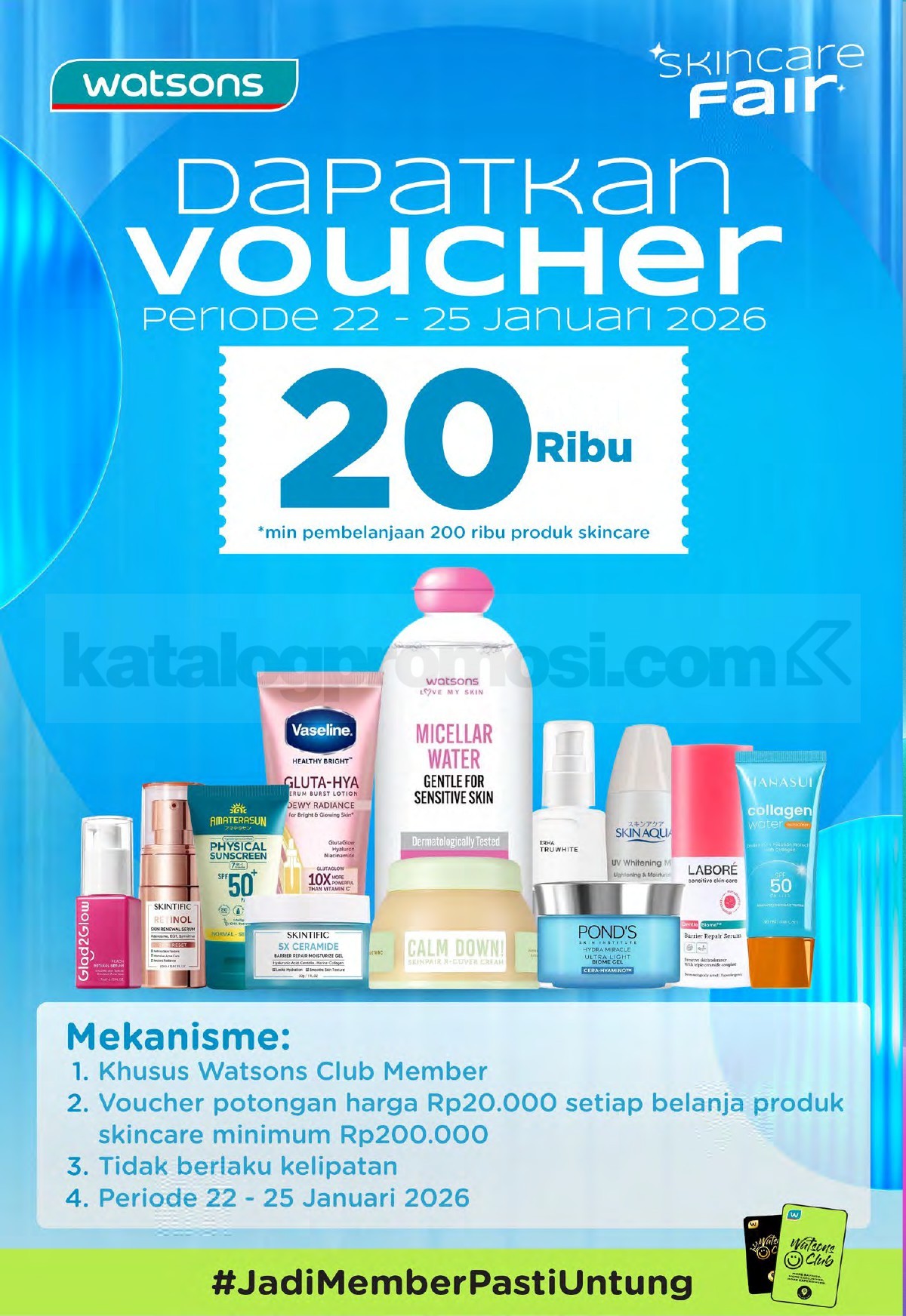 - Promo berlaku untuk produk skincare pilihan yang ditentukan Watsons.