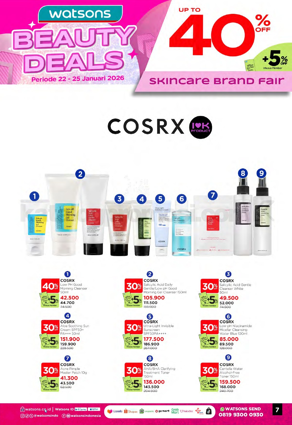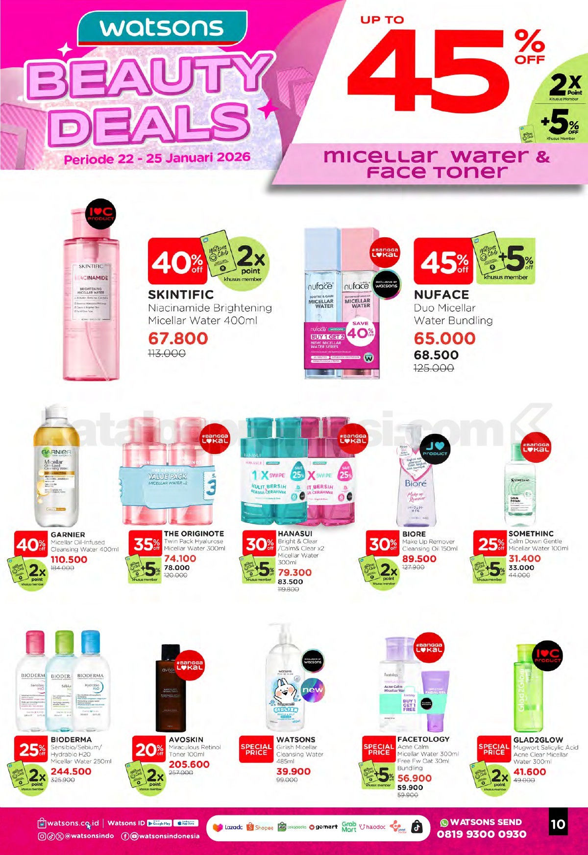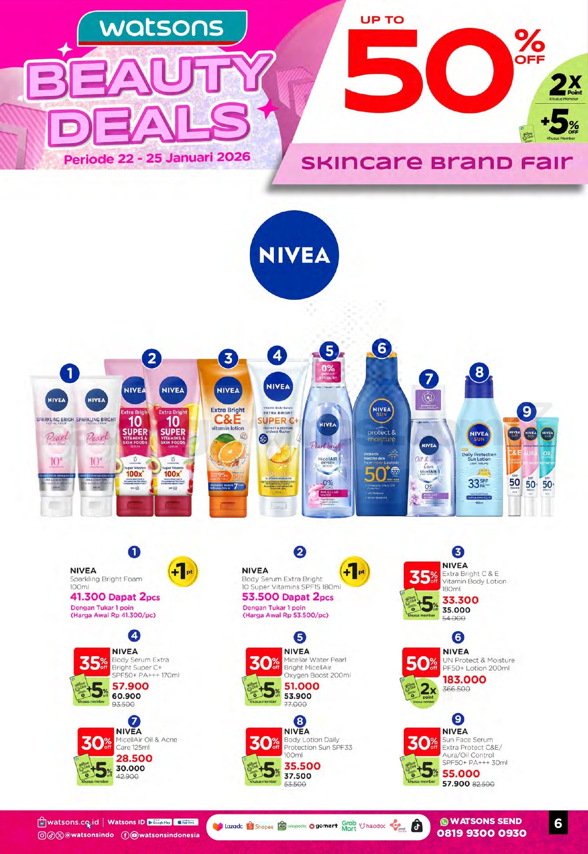 Bagi member Watsons, ada ekstra diskon 5% yang bisa langsung dipakai saat belanja. Promo ini berlaku untuk pembelian offline maupun online, jadi kamu bebas pilih cara belanja yang paling nyaman. 🌸