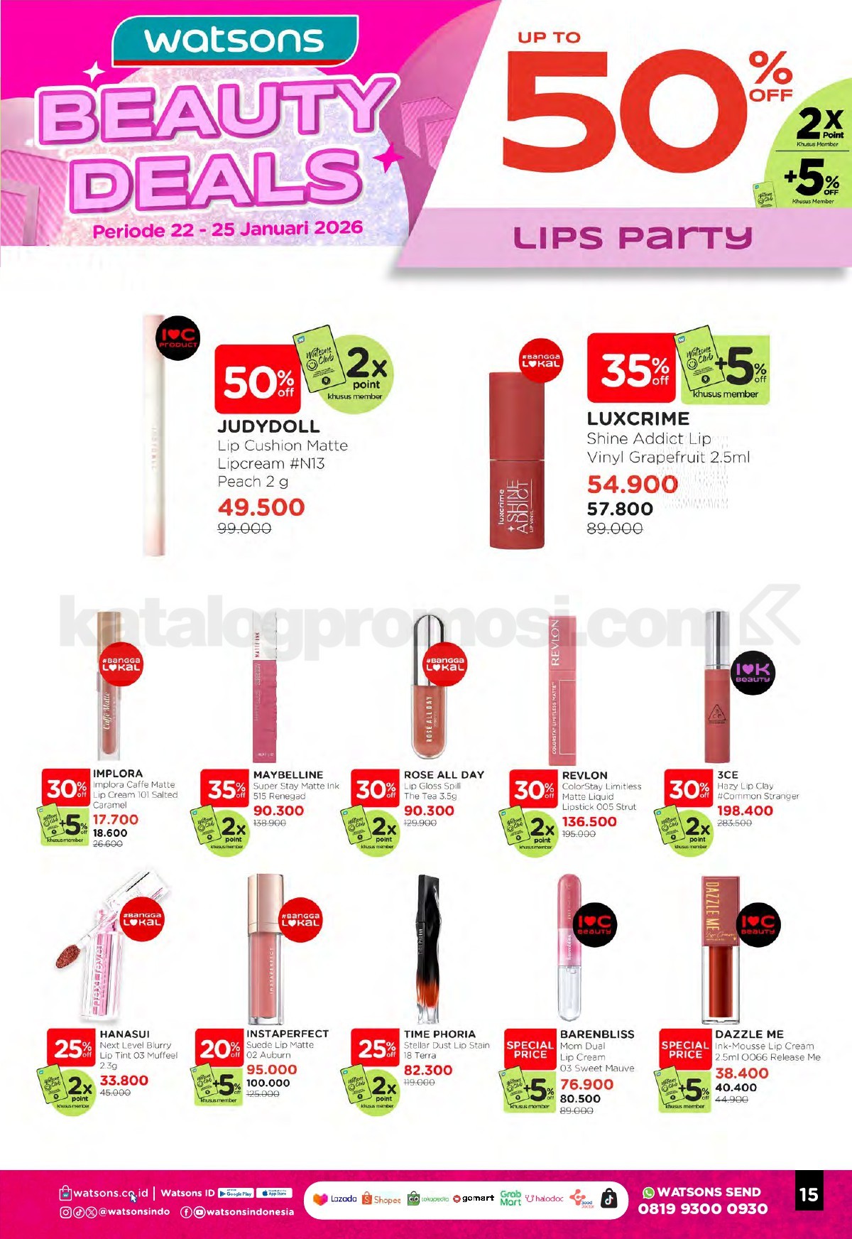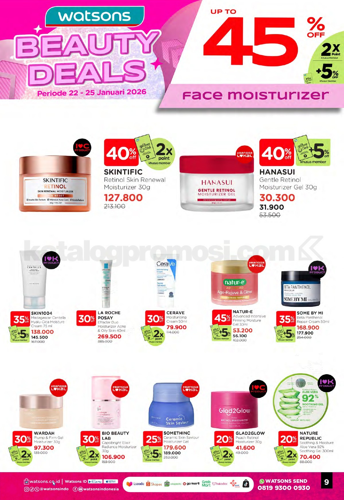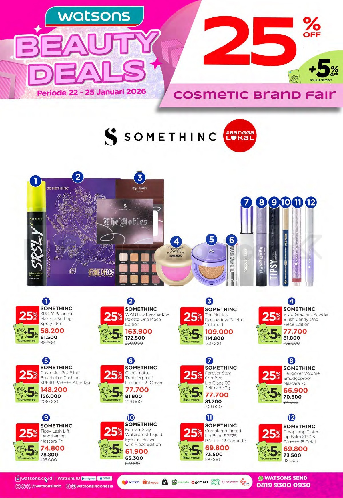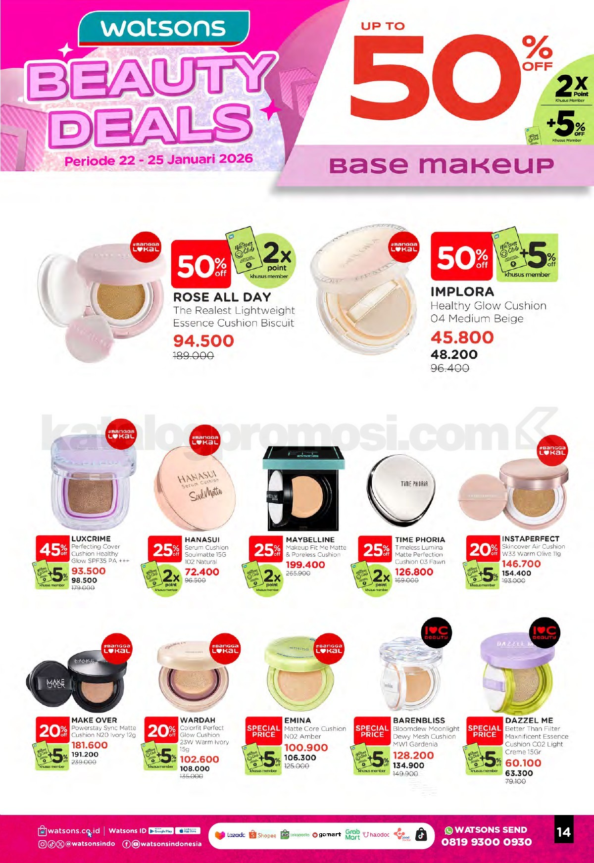 Bagi member Watsons, ada ekstra diskon 5% yang bisa langsung dipakai saat belanja. Promo ini berlaku untuk pembelian offline maupun online, jadi kamu bebas pilih cara belanja yang paling nyaman. 🌸