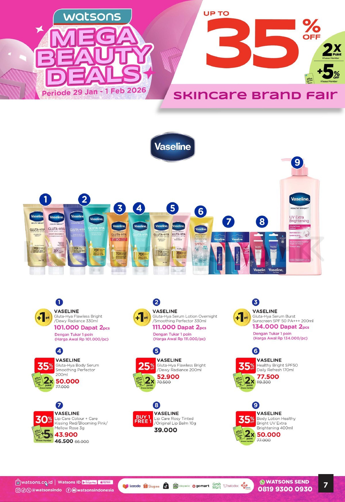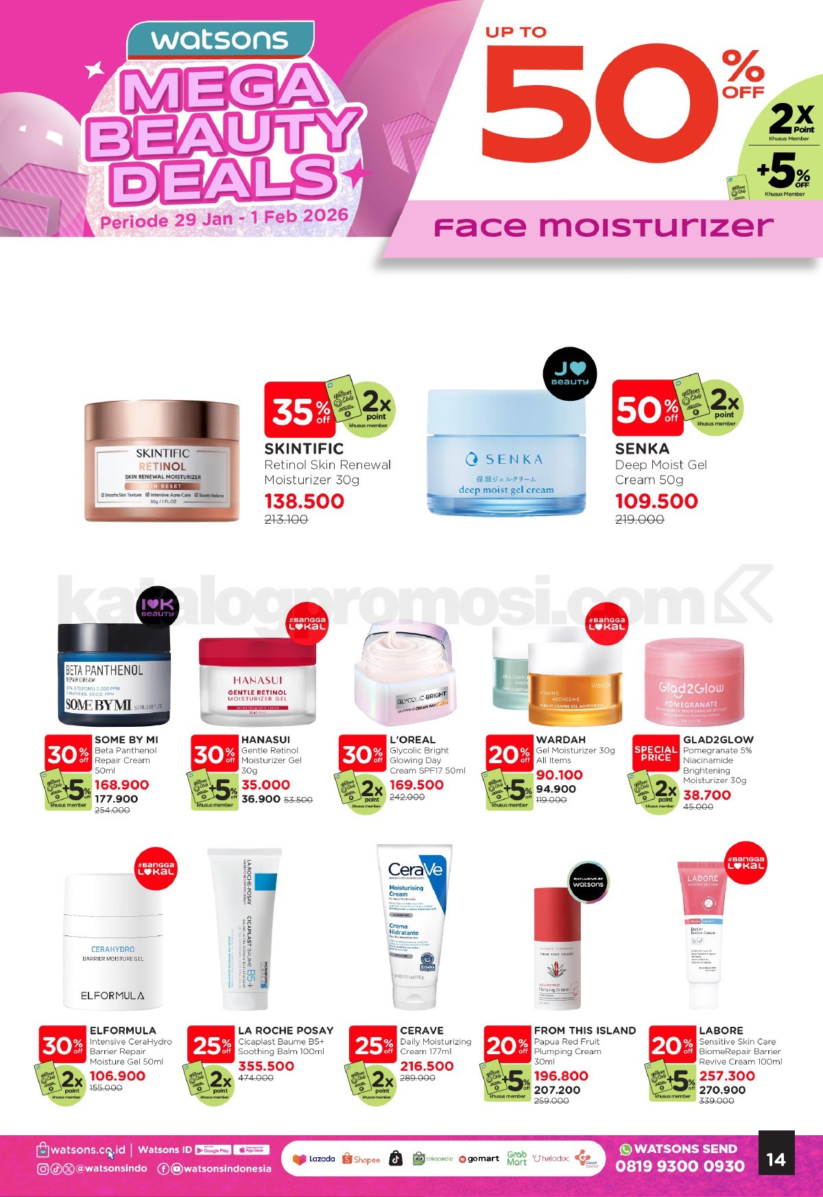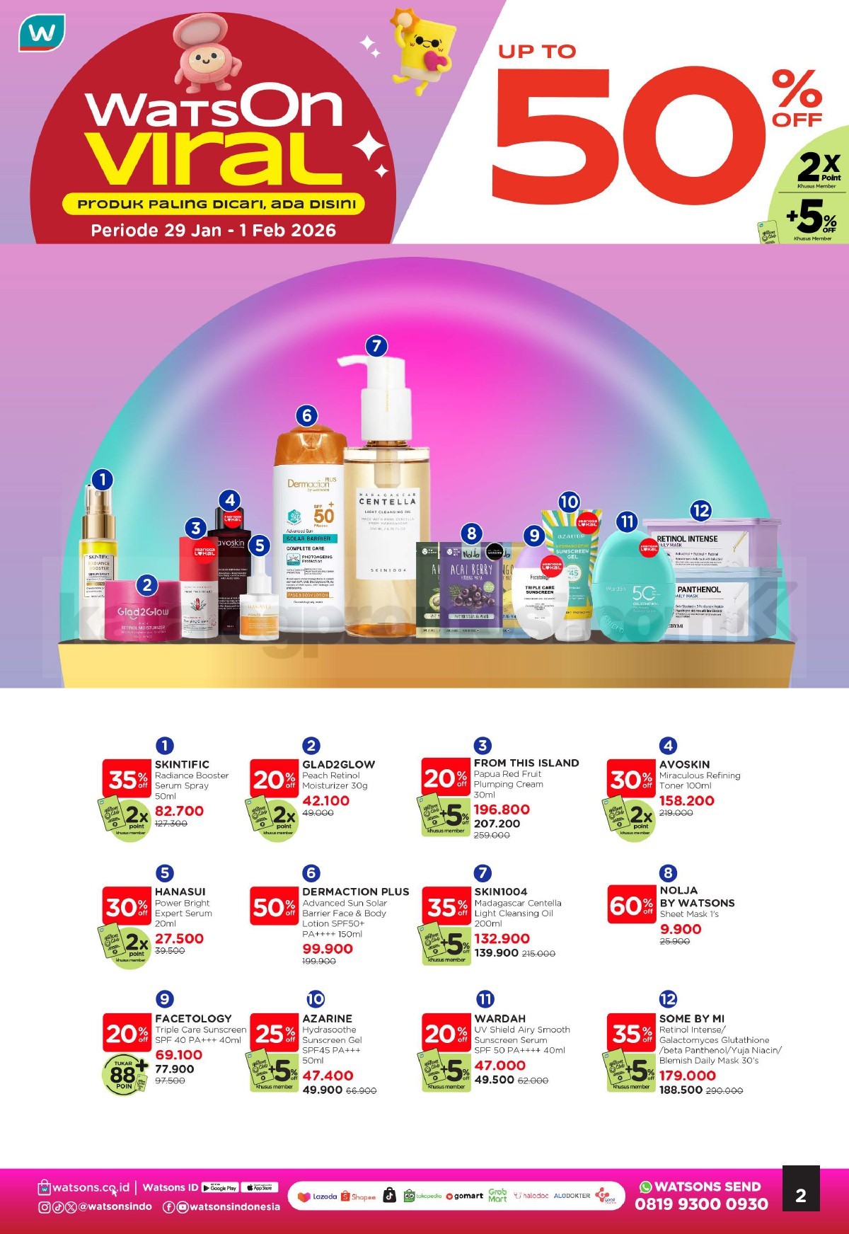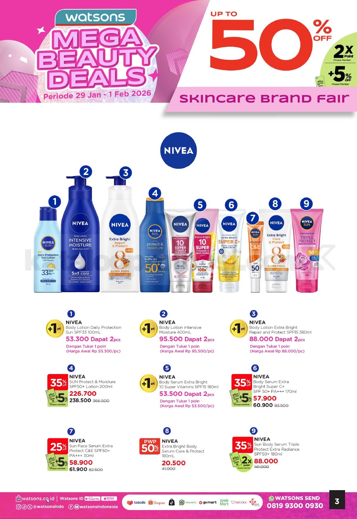 - Promo berlaku untuk produk skincare pilihan yang ditentukan Watsons.
