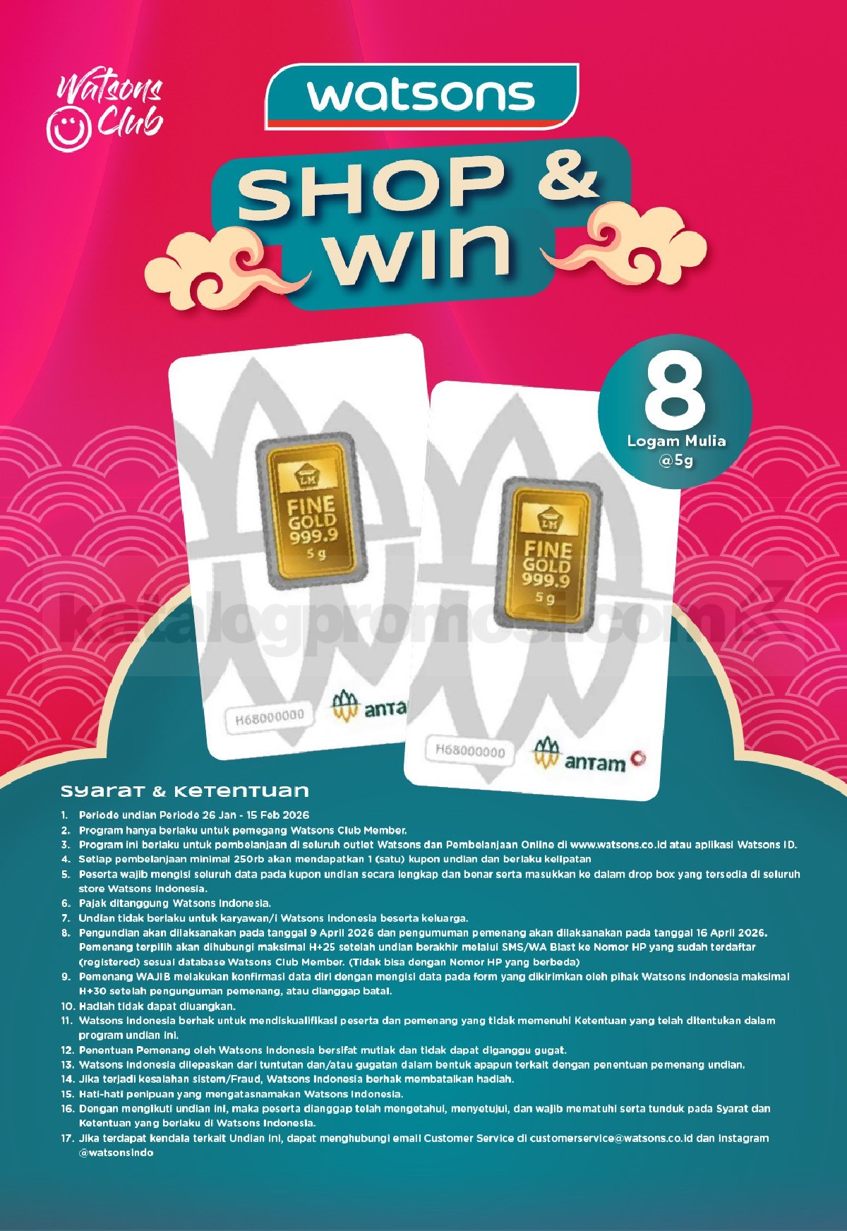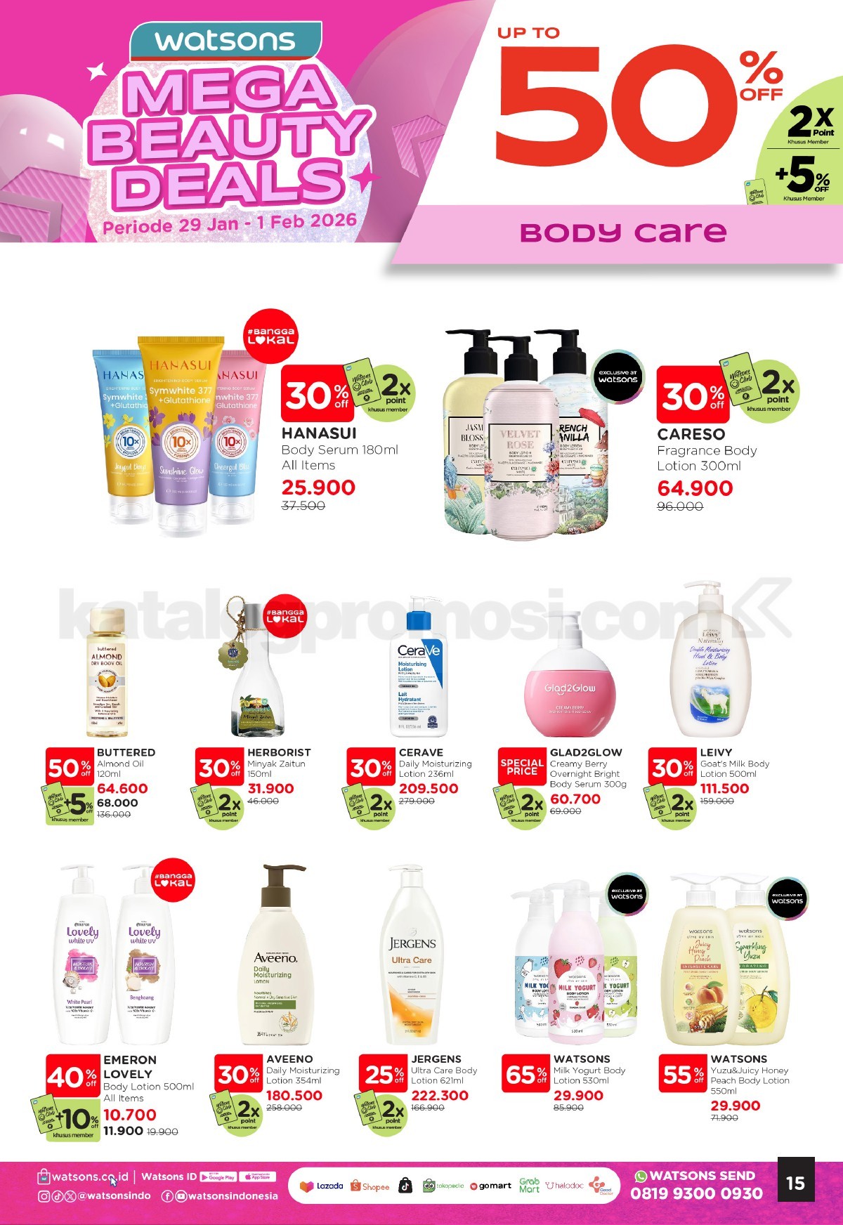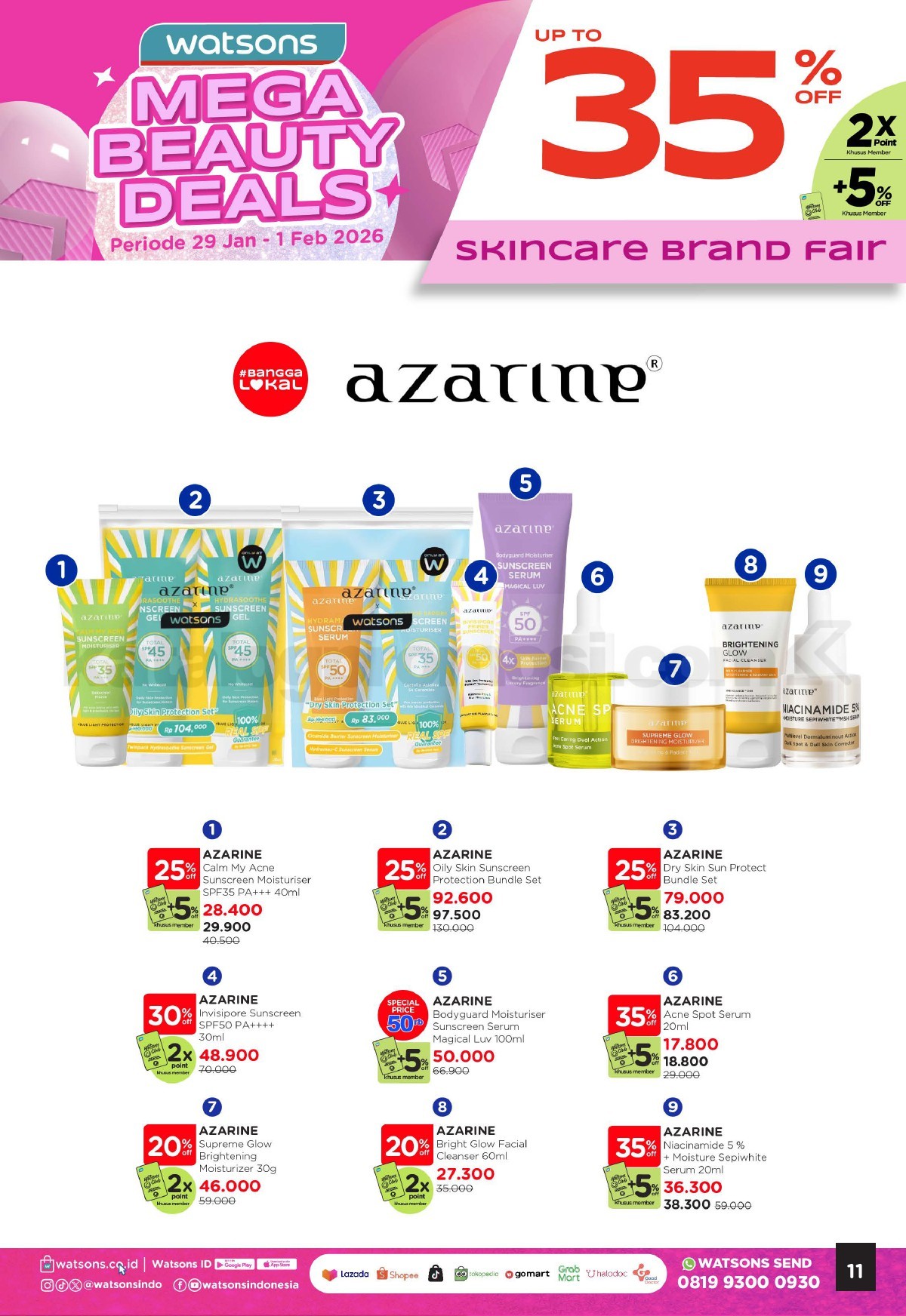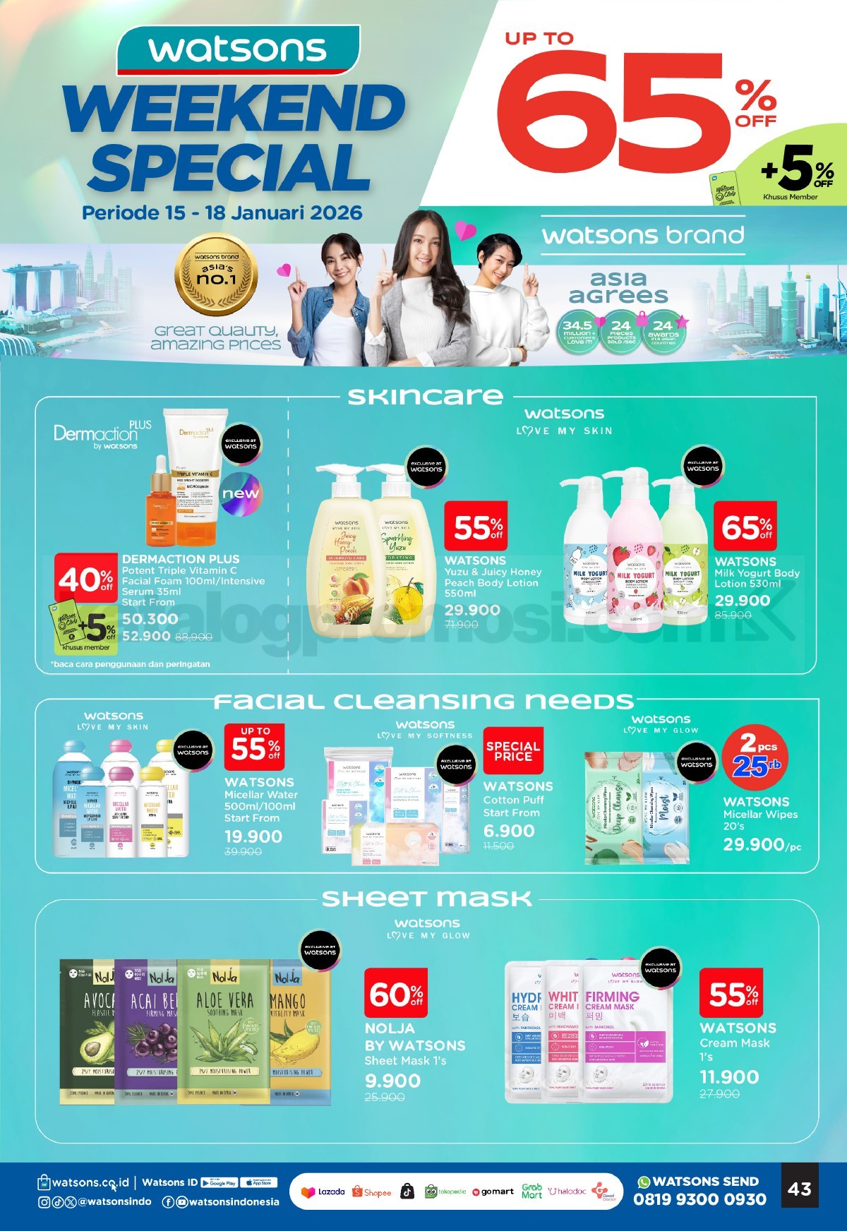 - Promo berlaku untuk produk skincare pilihan yang ditentukan Watsons.