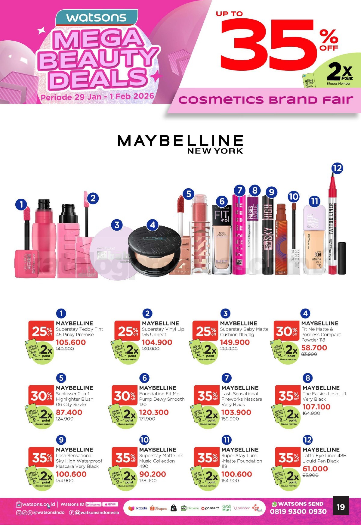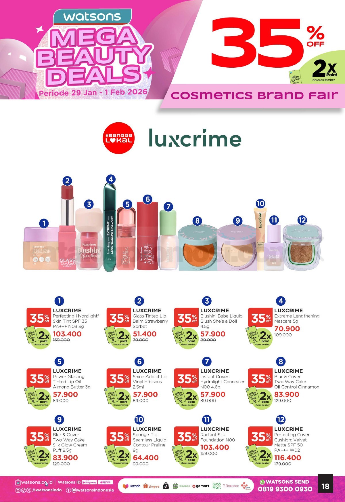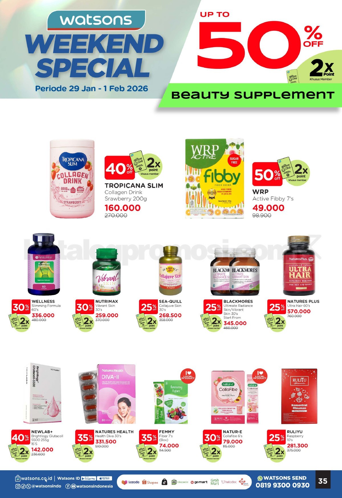 Promo Watsons Weekend Beauty Deals diskon 35% berlaku mulai 29 Januari – 01 Februari 2026 di seluruh outlet.