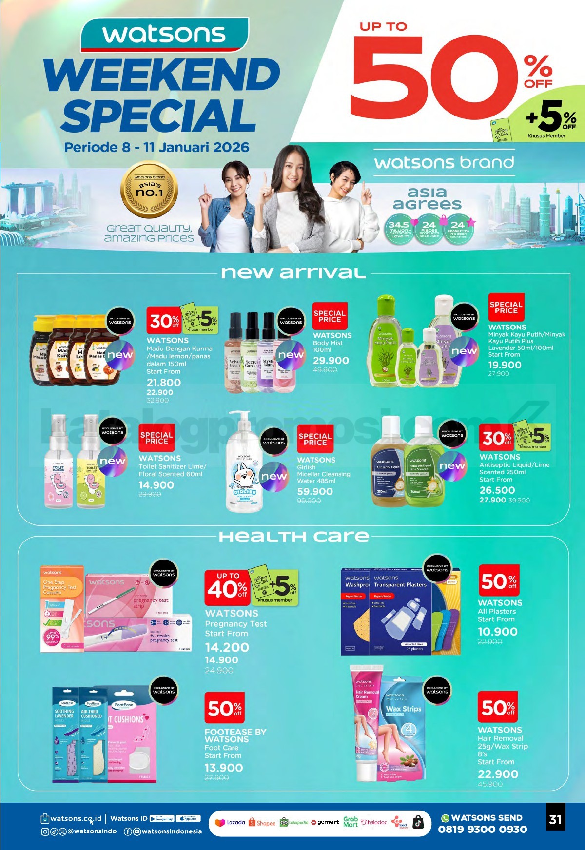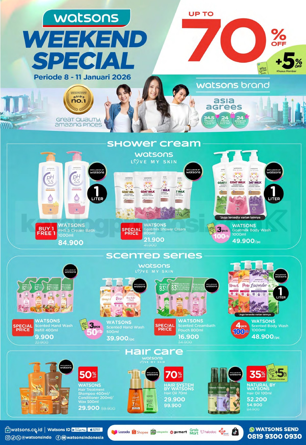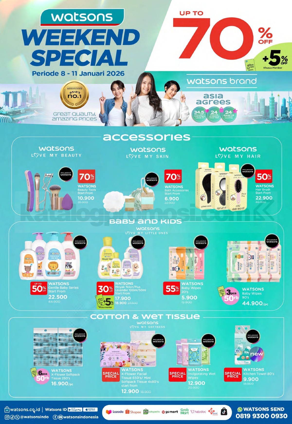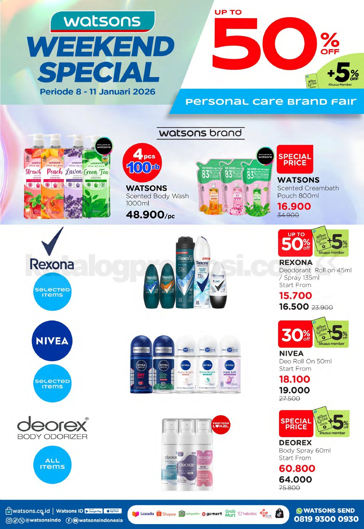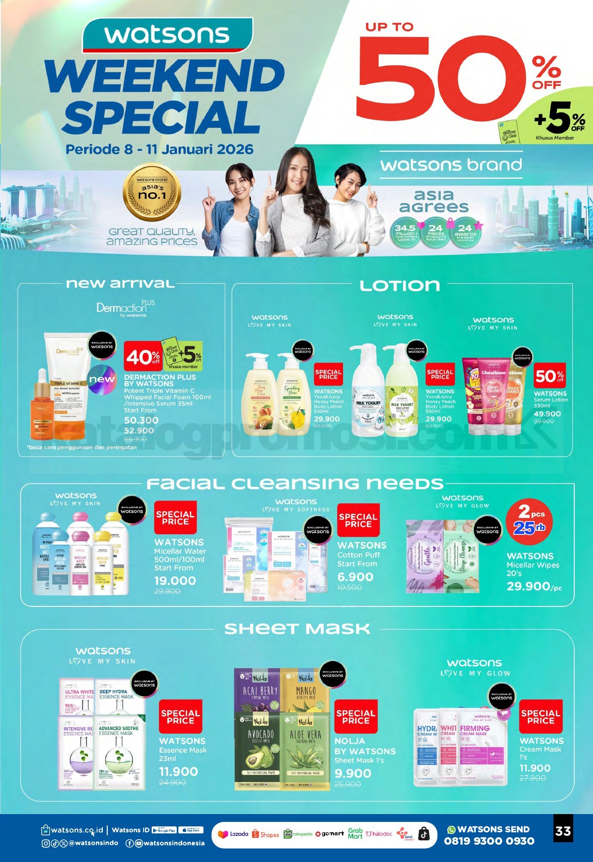 PROMO WATSONS WEEKEND SPECIAL Diskon hingga 50% Berlaku mulai tanggal 08-11 Januari 2026