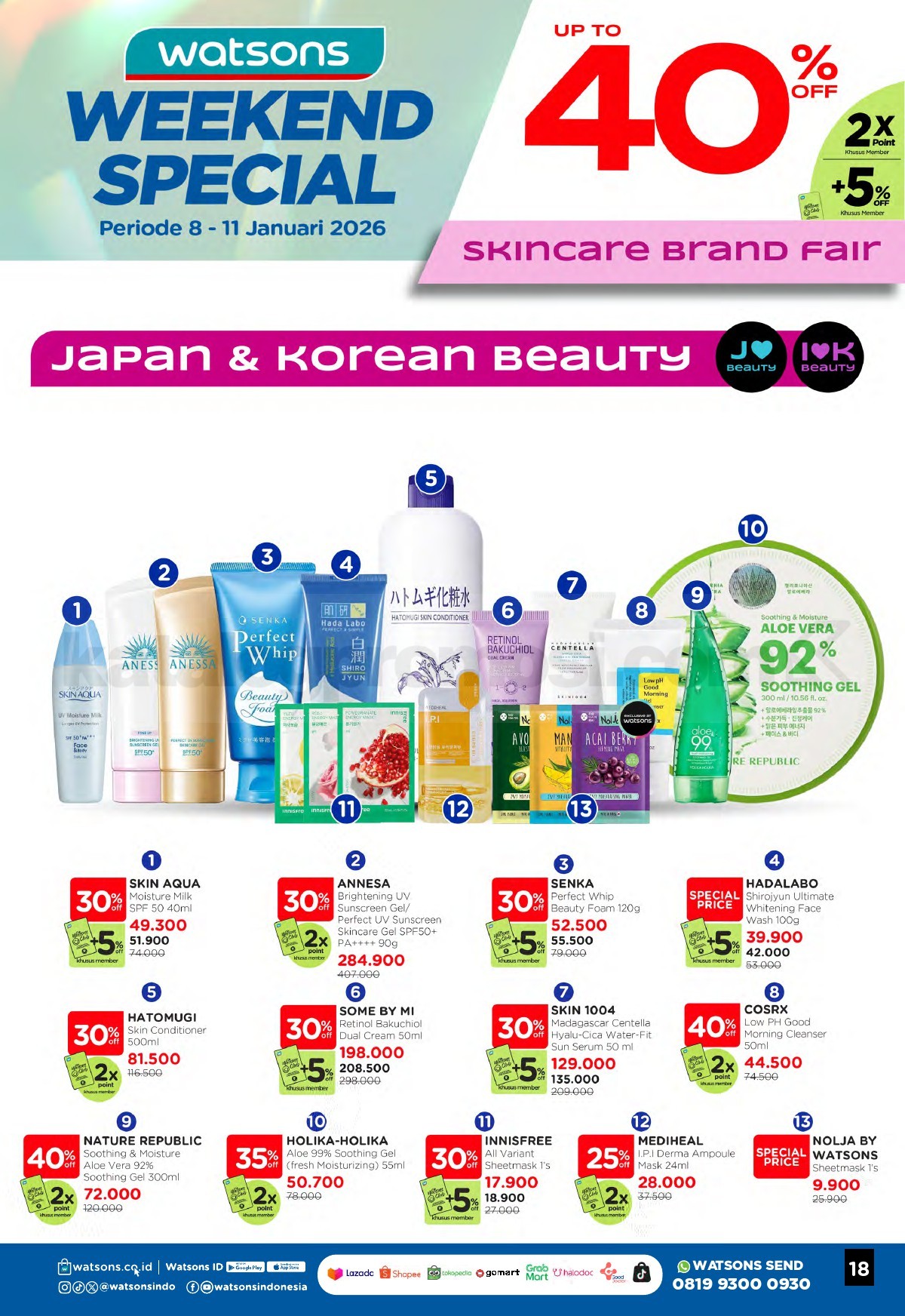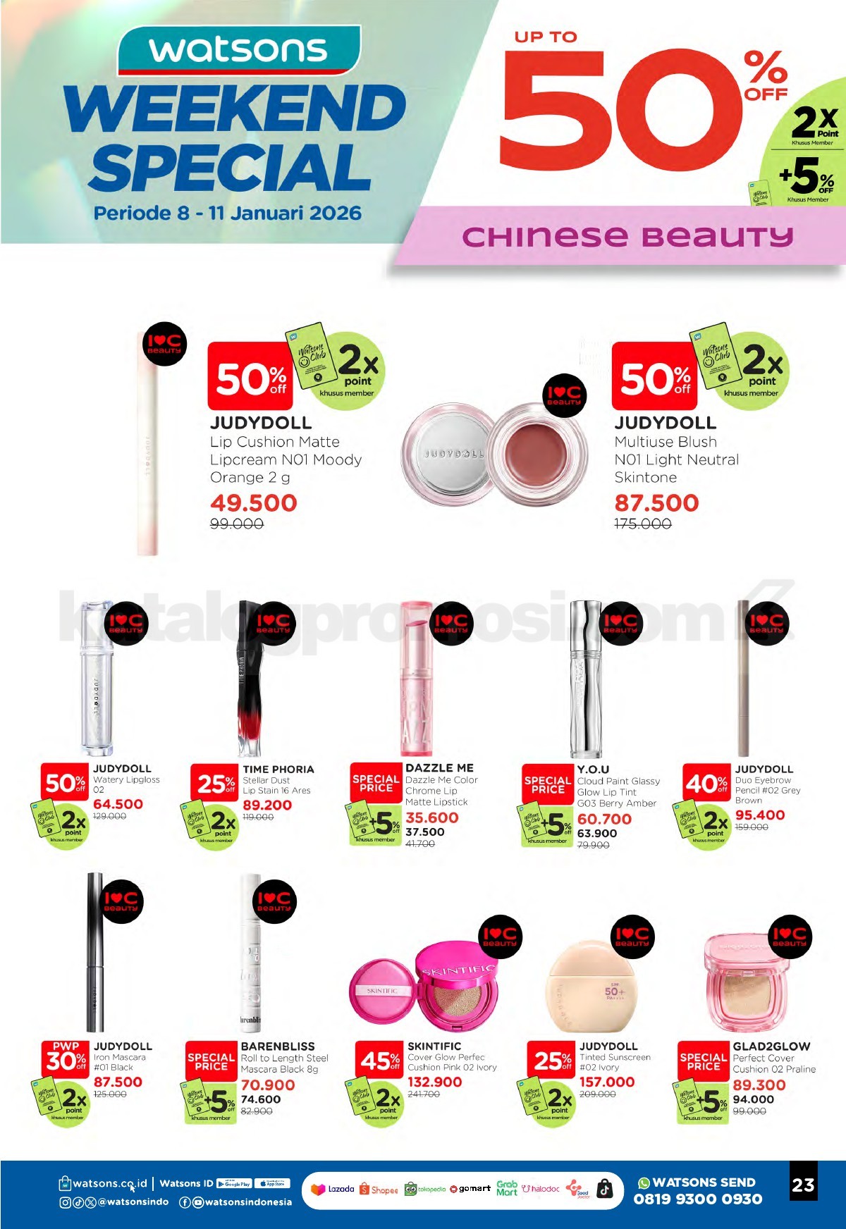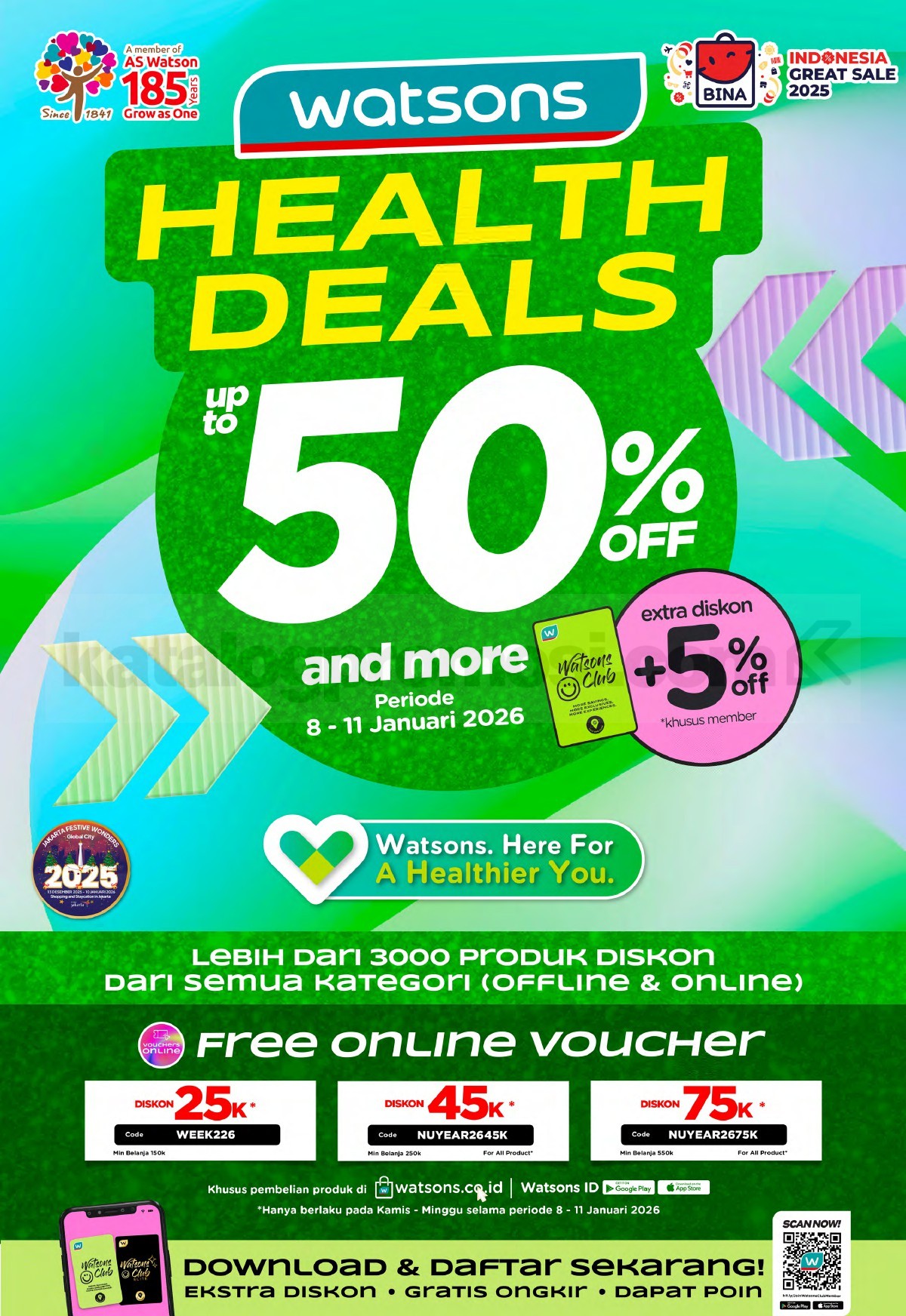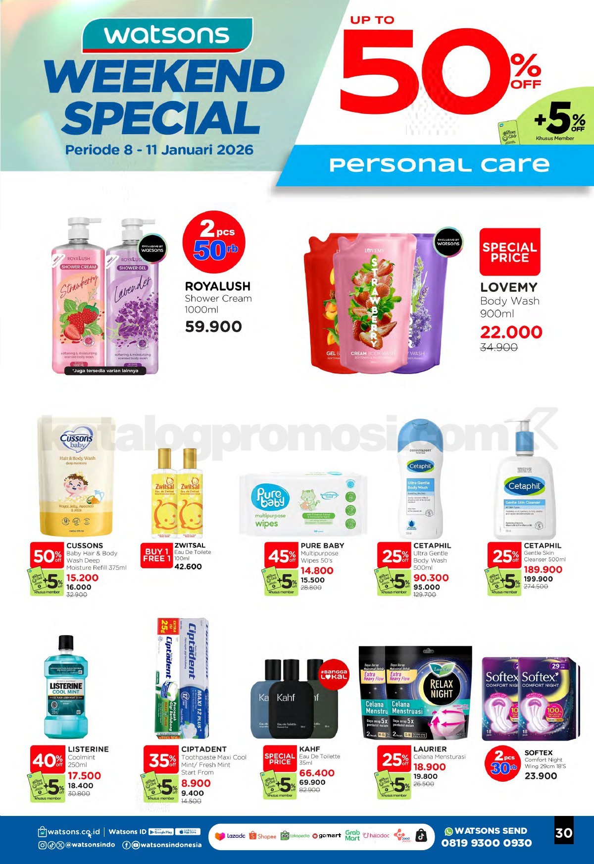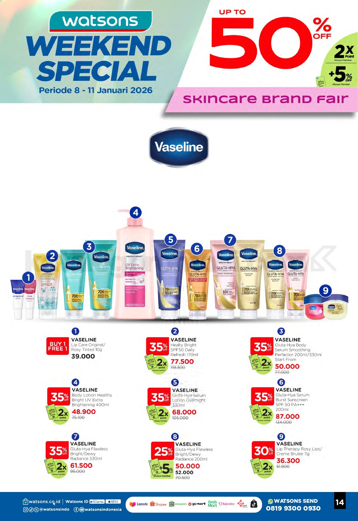 PROMO WATSONS WEEKEND SPECIAL Diskon hingga 50% Berlaku mulai tanggal 08-11 Januari 2026