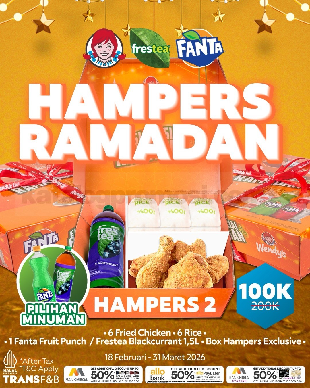Promo Wendy’s Edisi Spesial Ramadan Hampers mulai Rp. 100.000 paket berbagi lengkap minuman 1,5L berlaku hingga 31 Maret 2026