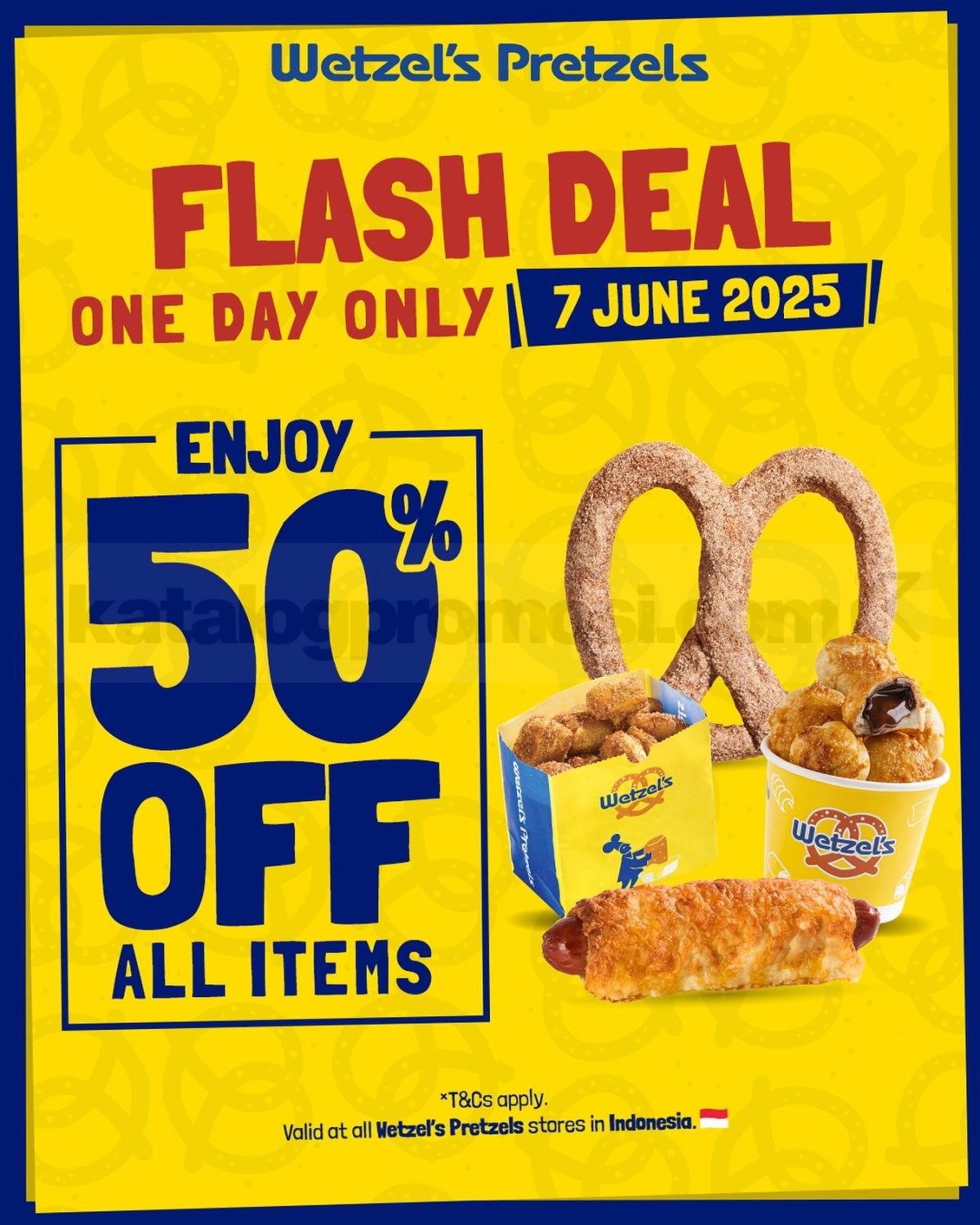 - Berlaku di outlet Wetzel’s Pretzels Indonesia (Pondok Indah Mall, Puri Indah Mall 2, Summarecon Mall Kelapa Gading 3, Lippo Mall Puri).