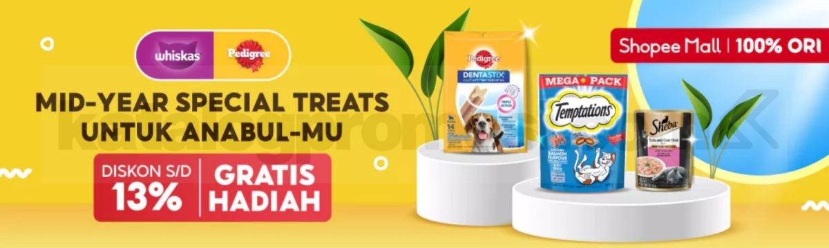 Promo Whiskas dan Pedigree di Shopee Mall Diskon hingga 13% dan Gratis Hadiah.