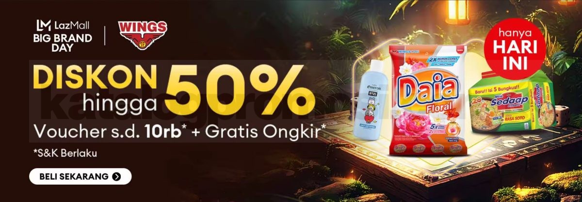 Promo WINGS di Lazada Diskon hingga 50% dan Voucher 10K + Gratis Ongkir.
