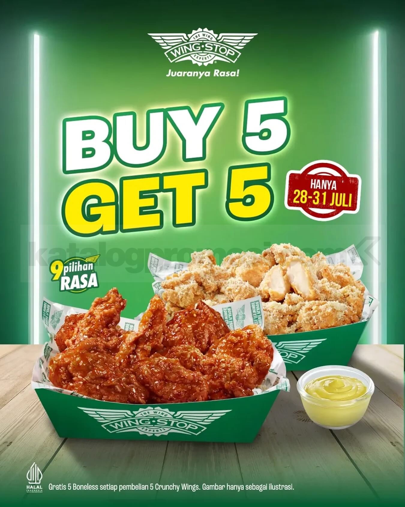Buruan pesan sekarang karena Promo Wingstop Buy 5 Get 5 ini cuma berlaku sampai 7 September 2025. Gak mau rugi kan cuma karena kelamaan mikir?