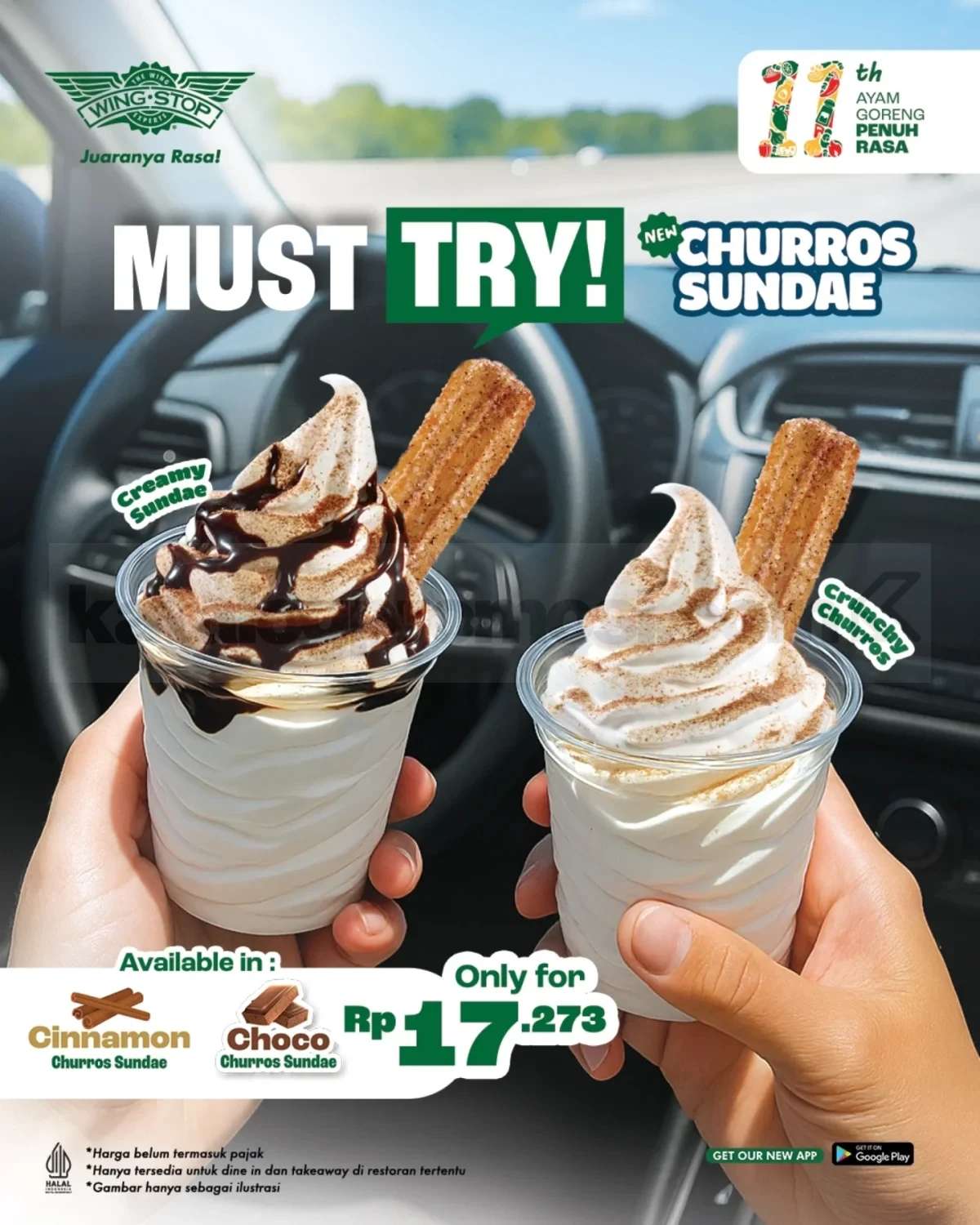 Lagi bad mood atau butuh hiburan kecil yang manis-manis? 🍦 Tenang, kamu bisa langsung nyegerin hari kamu lewat Promo Wingstop Churros Sundae Manis & Creamy! Harga cuma mulai 17 ribuan, tapi efek bahagianya? Gak main-main 😍