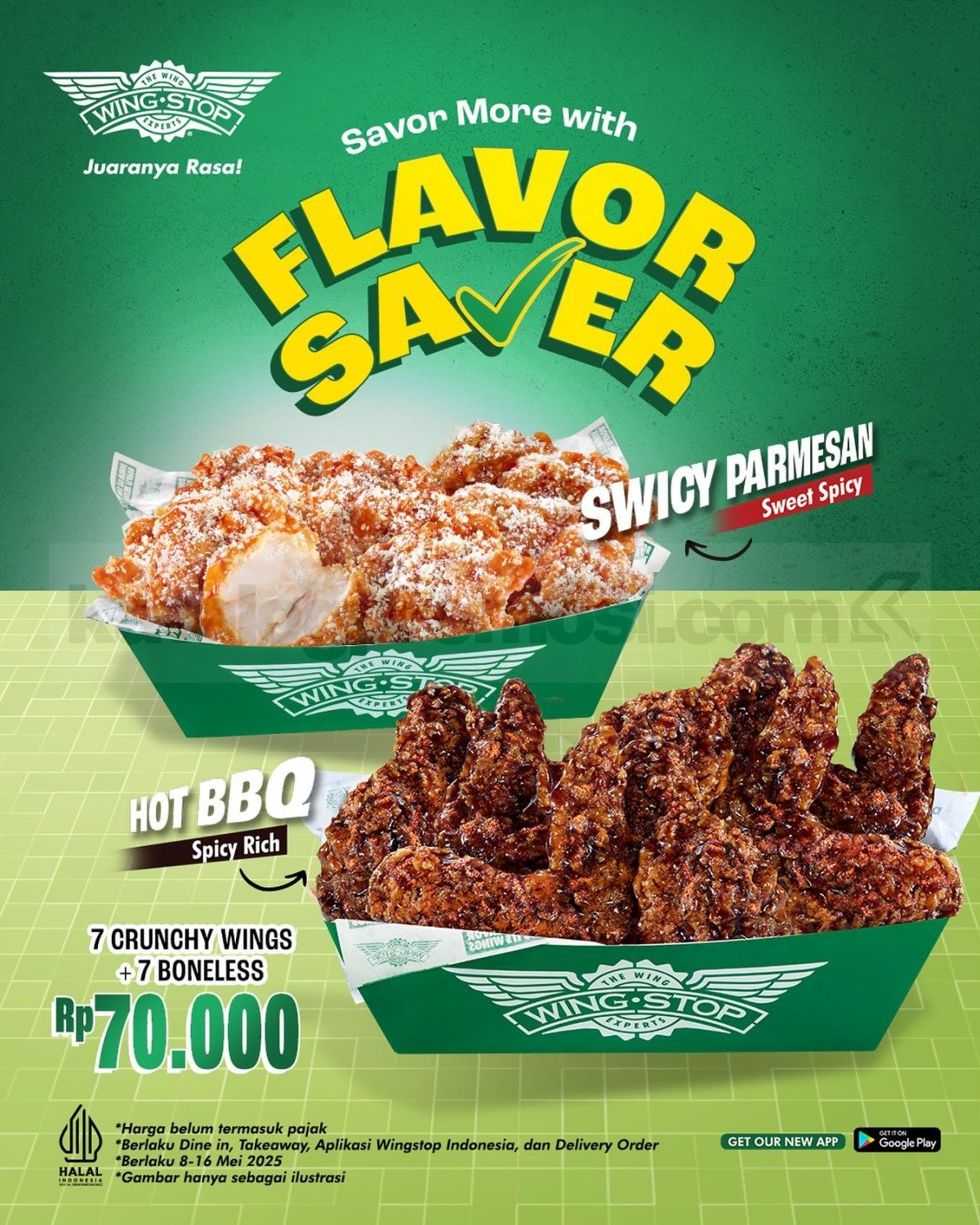 👉 Cek gambar promo Wingstop Flavor Saver beli 7 gratis 7 di bawah ini untuk lihat info lengkap dan pilihan rasanya