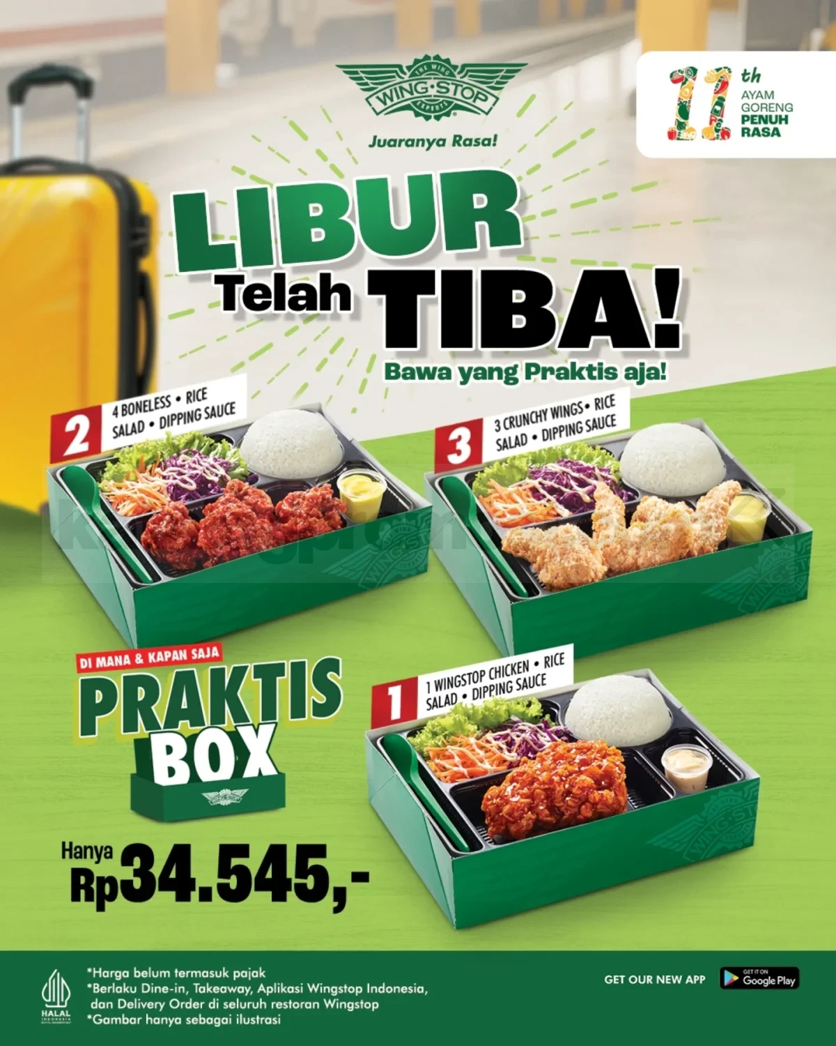Libur telah tiba, saatnya bawa yang praktis dan penuh rasa bareng Wingstop! Spesial buat nemenin liburan kamu, ada menu hemat PRAKTIS BOX cuma Rp34 ribuan aja per paket.