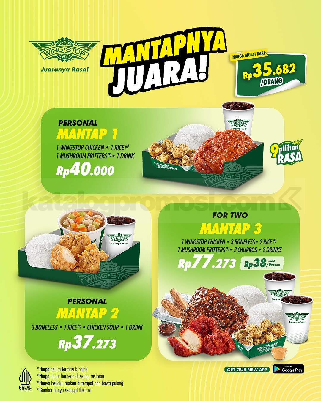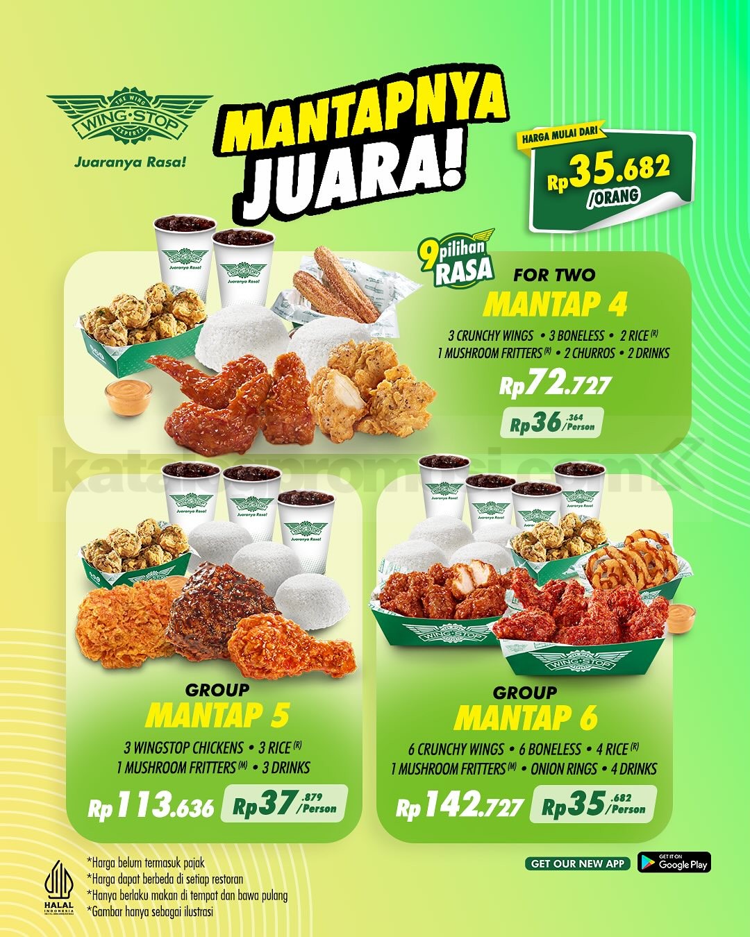 Promo Wingstop Menu Mantapnya Juara mulai 35ribuan per orang, nikmati paket lengkap Personal, For Two, hingga Group dengan harga hemat.
