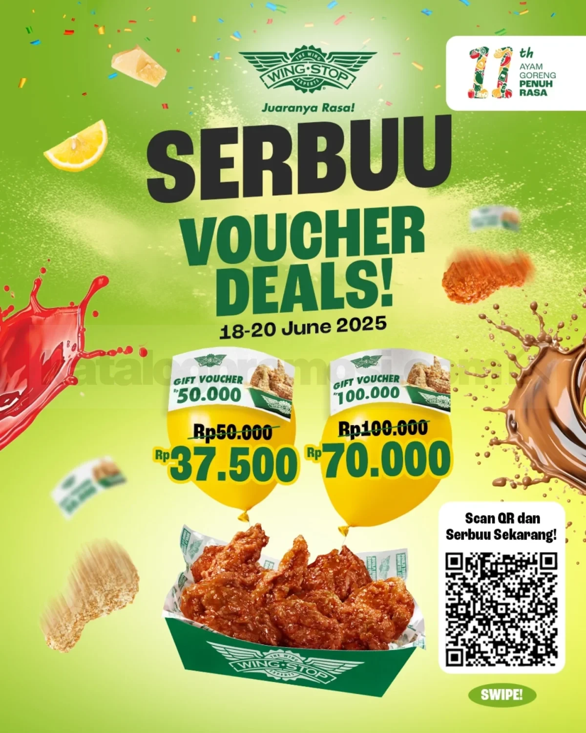 Berlaku di outlet Wingstop yang berpartisipasi, promo ini menawarkan penukaran voucher untuk menu pilihan dengan harga jauh lebih murah dari harga normal.