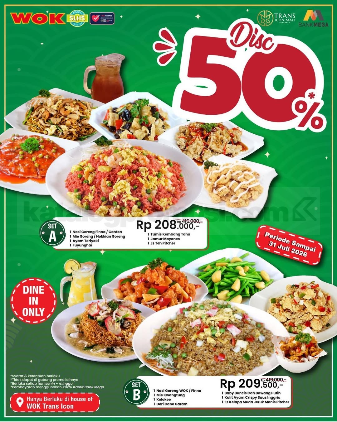 Promo WOK Bank Mega Diskon 50% Set Menu hemat bayar kartu kredit Bank Mega berlaku hingga 31 Juli 2026 di House of WOK Trans Icon Mall Surabaya