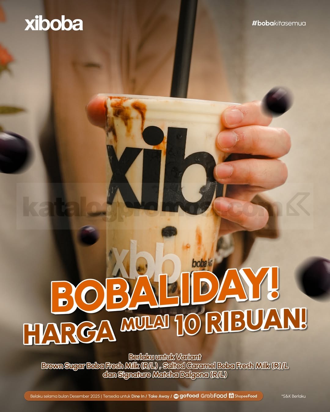Promo Xiboba Bobaliday Mulai Rp. 10.000, nikmati Brown Sugar, Salted Caramel & Matcha Dalgona selama Desember 2025, berlaku dine in, take away, dan ojol.
