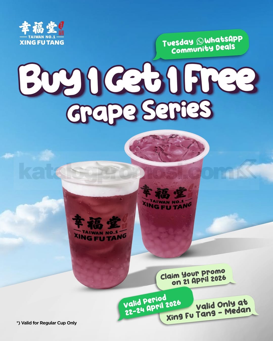Promo Xing Fu Tang Grape Series beli 1 gratis 1 nikmati minuman favorit dengan promo spesial berlaku 21 April 2026 di Xing Fu Tang Medan