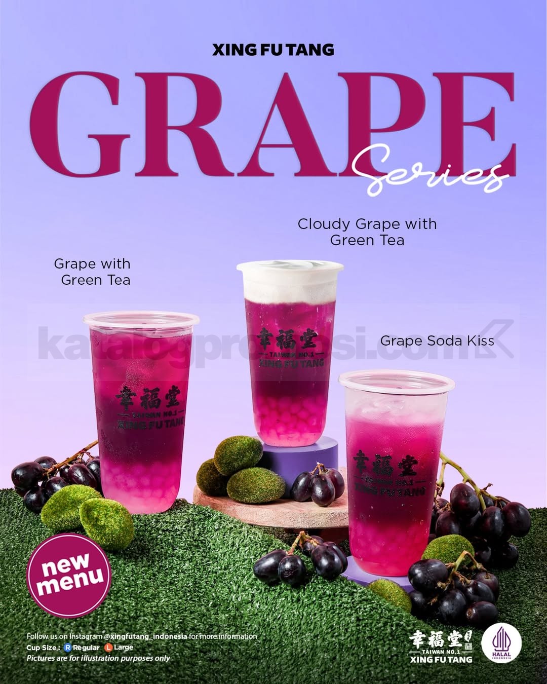 👉 Cek gambar Promo Xing Fu Tang NEW! Grape Series di bawah ini untuk lihat tampilan minuman segarnya yang bikin langsung pengen coba!