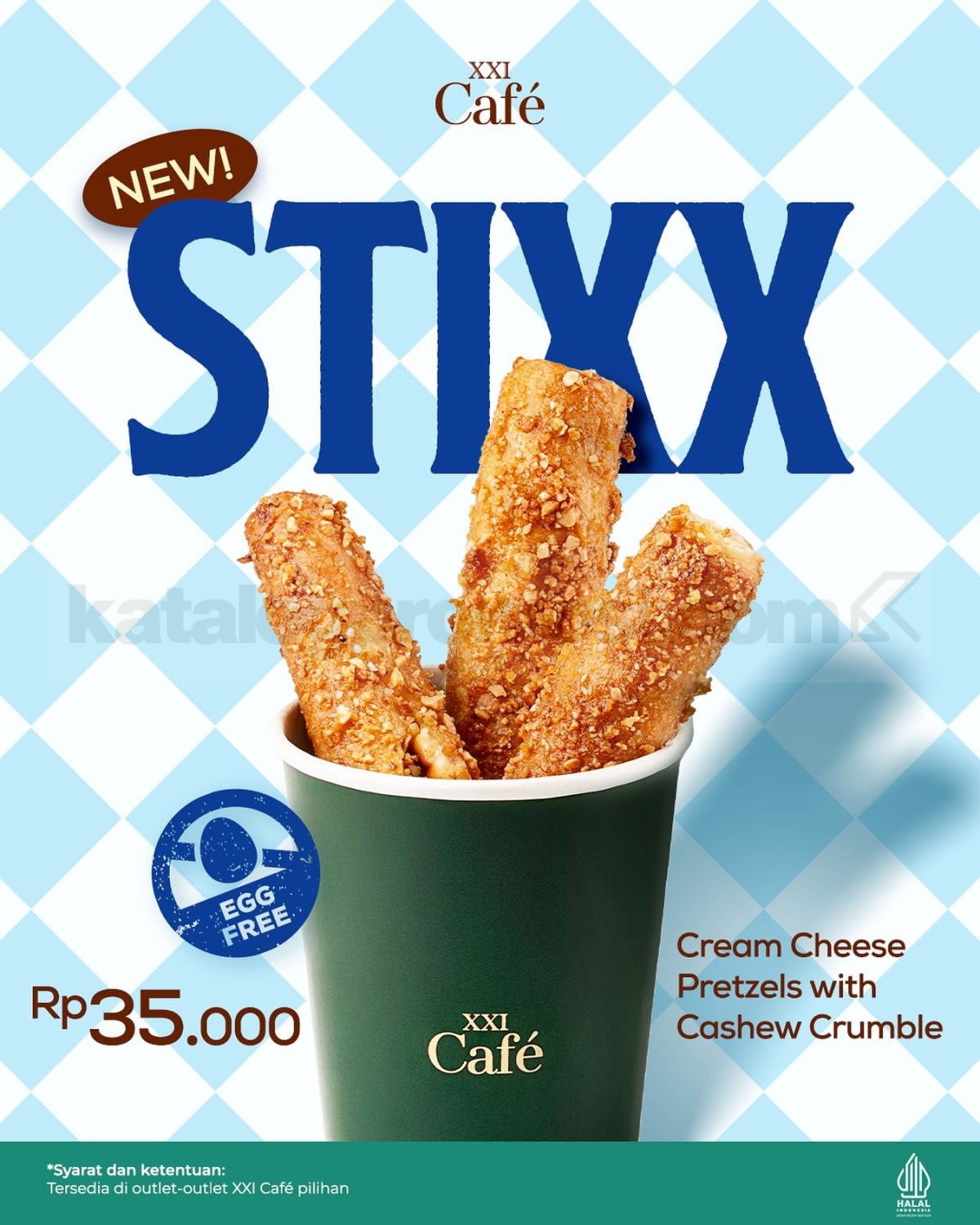 Promo berlaku khusus untuk menu STIXX Cream Cheese Pretzels di XXI Café.