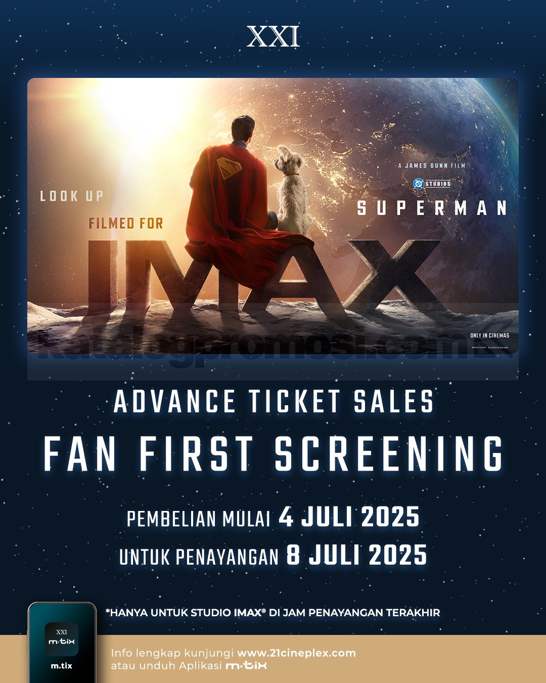 👉 Cek gambar promo XXI Cinema Fan First Screening Film Superman di bawah ini buat lihat detail screening dan info tiketnya!