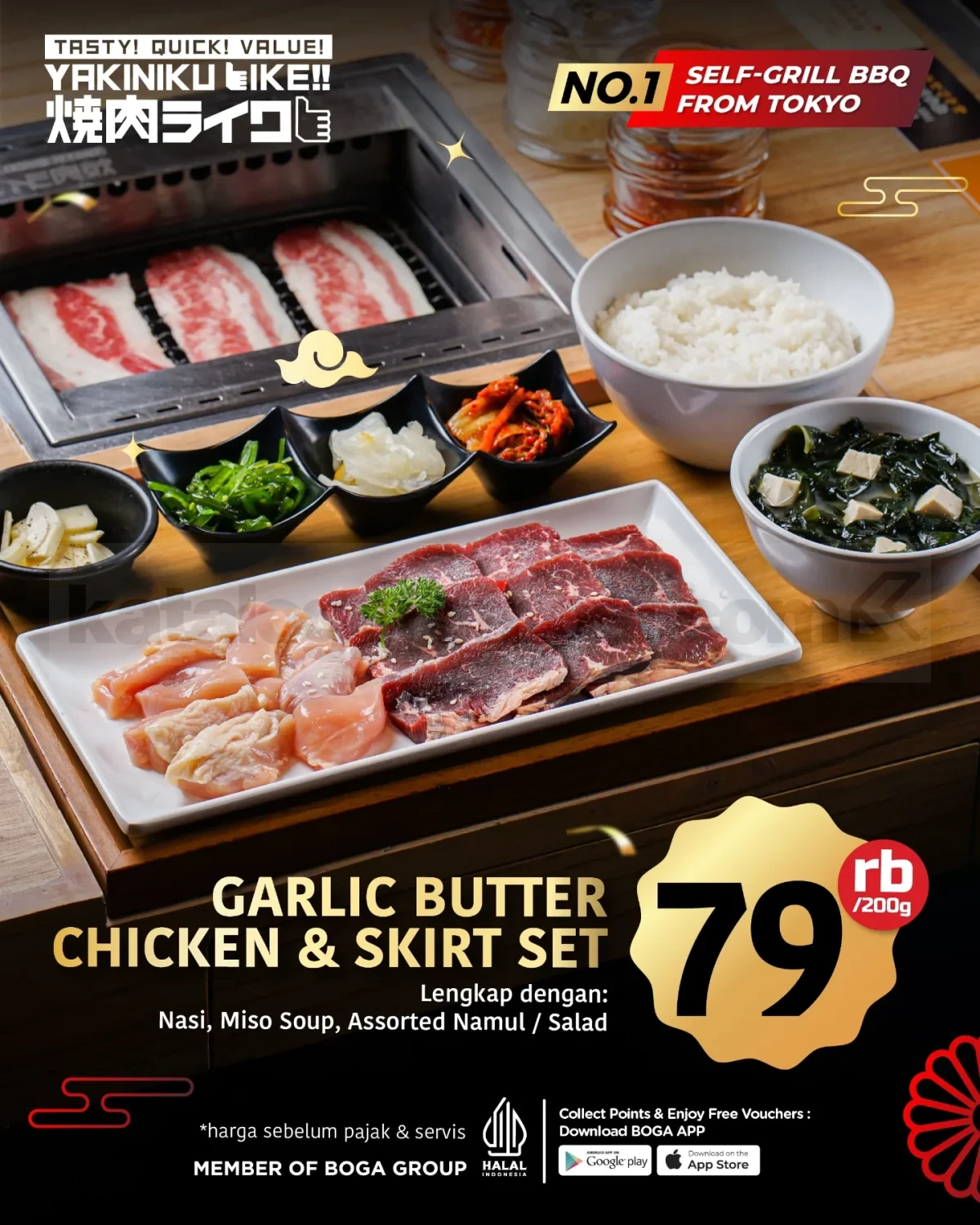 β’ Berlaku di seluruh Yakiniku Like kecuali Grand Indonesia, Pacific Place, Mall of Indonesia, dan Trans Icon Surabaya
