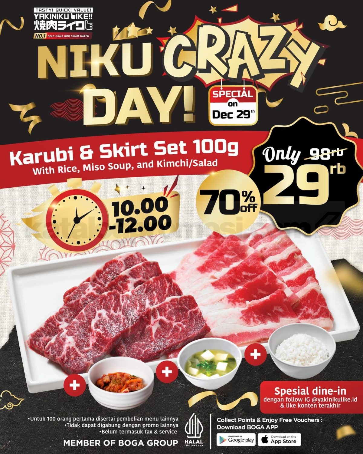 Promo Yakiniku Like Niku Crazy Day ini cuma ada 29 Desember 2025, jadi jangan sampai salah tanggal.