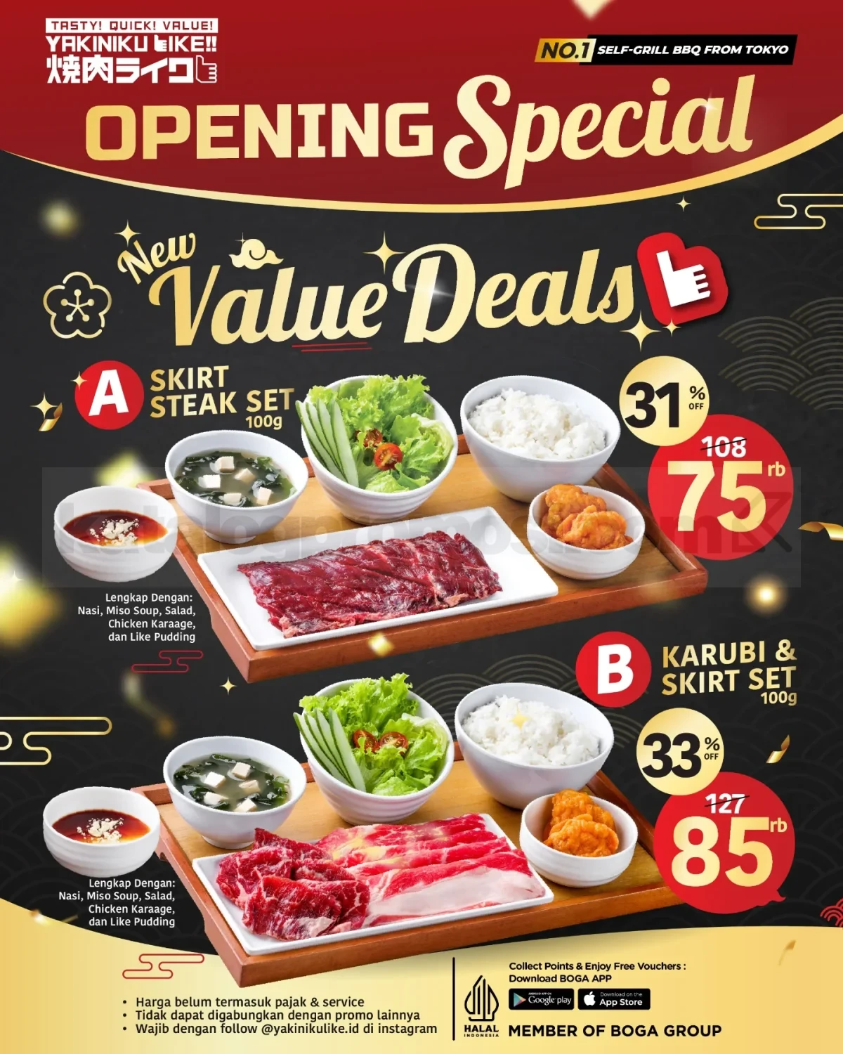 Promo berlaku selama periode opening outlet Yakiniku Like di Summarecon Mall Bekasi.