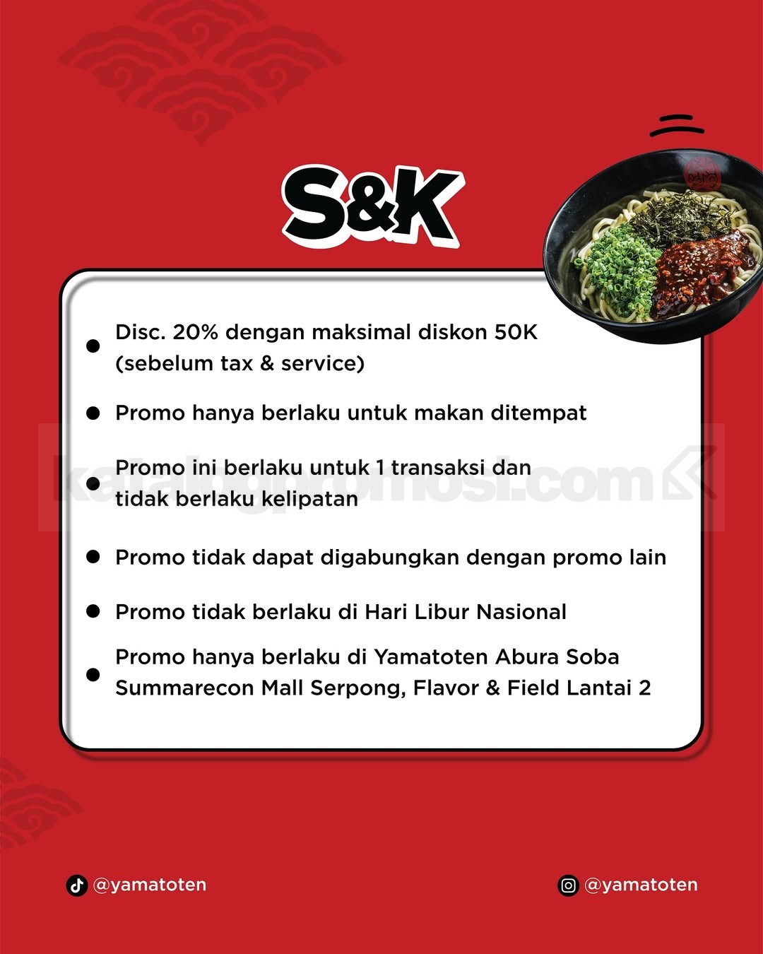 Promo hanya berlaku di Yamatoten Abura Soba Summarecon Mall Serpong, Flavor & Field Lantai 2.