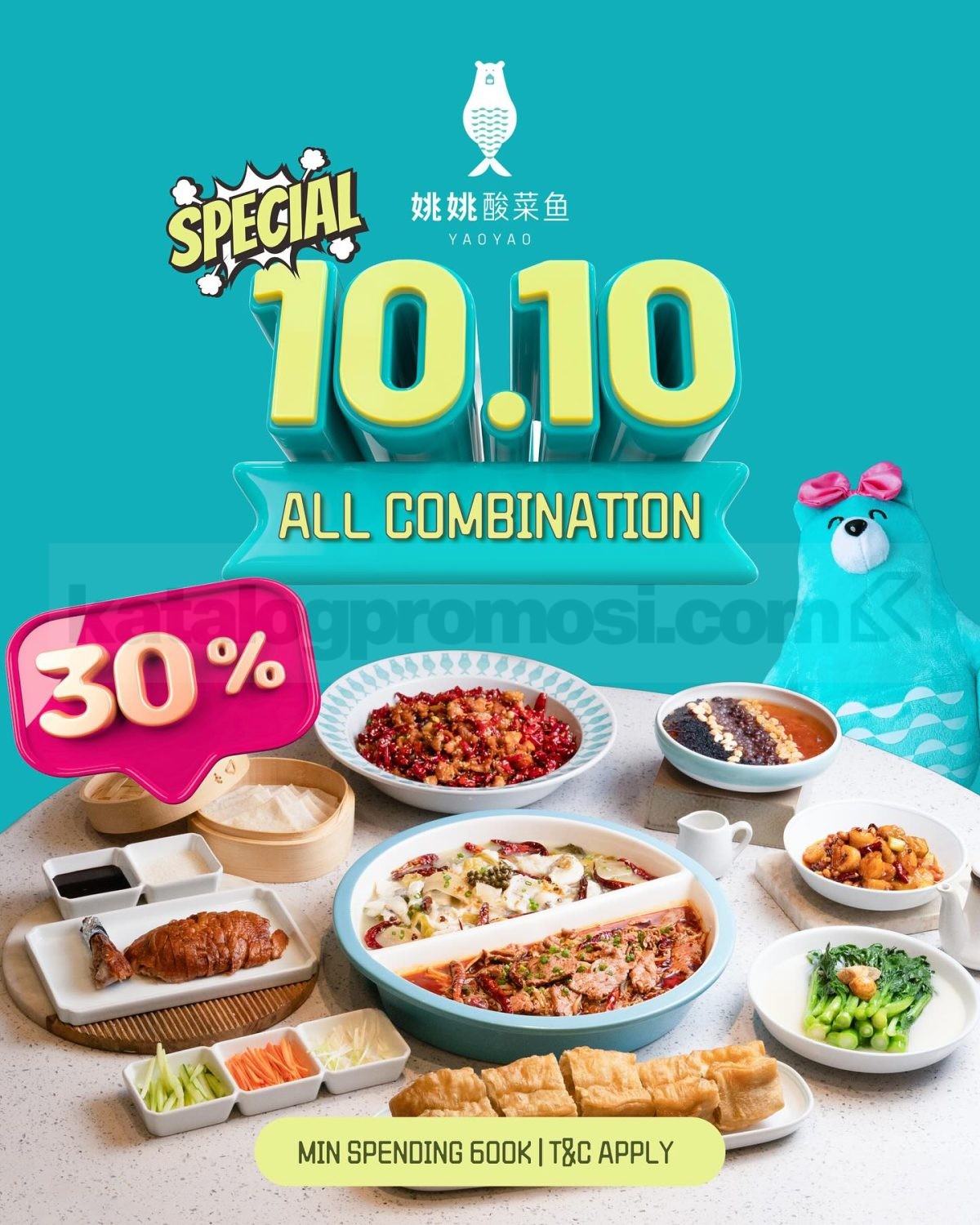 Promo YAOYAO 10.10 diskon 30% untuk semua menu kombinasi Suan Cai Yu berlaku 10 Oktober 2025 di Lippo Mall Puri & Gafoy Kelapa Gading.