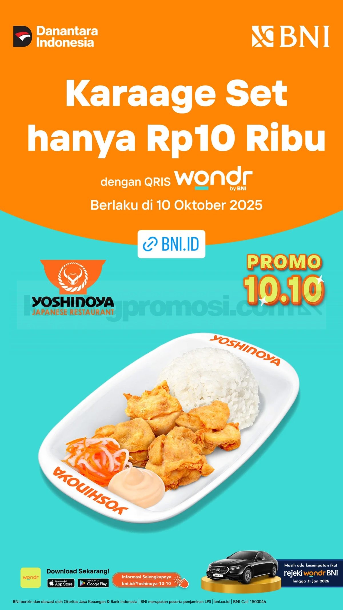 👉 Cek gambar Promo YOSHINOYA BNI 10.10 Karaage Set Rp. 10.000 di bawah ini untuk lihat detail lengkap promo dan syaratnya!