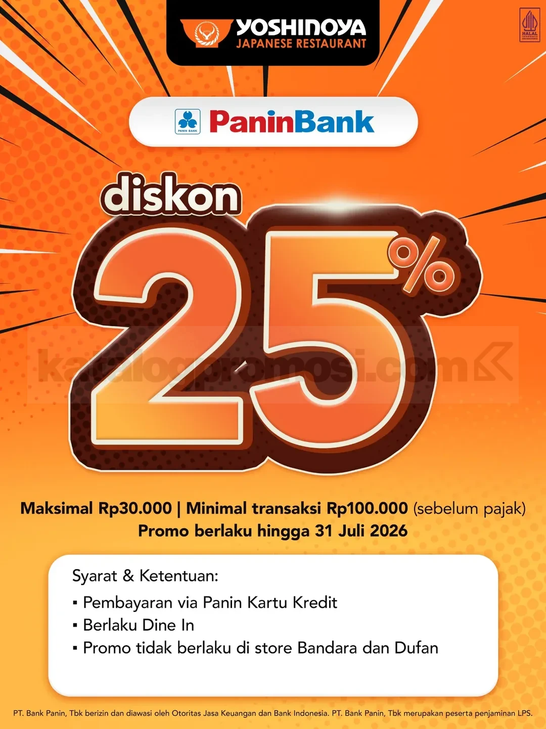 • Diskon 25% – Panin Bank Credit Card (hingga 31 Jul 2026, min. Rp100.000, dine in).