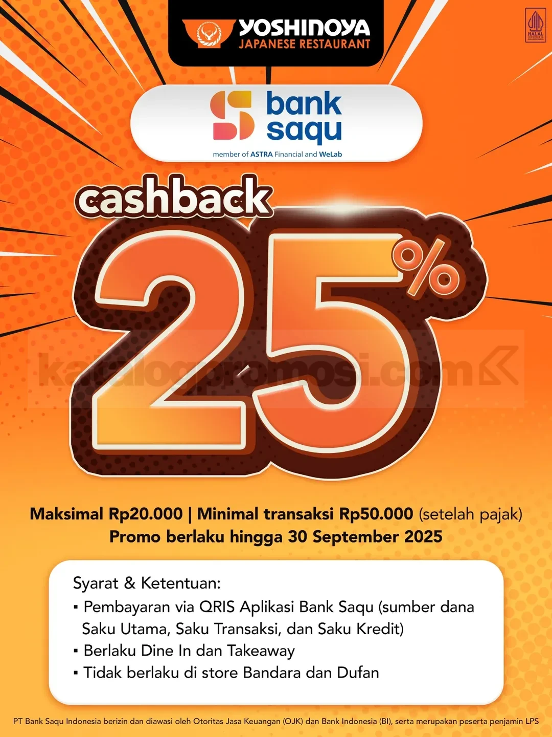 • Cashback 25% – Bank Saqu (hingga 30 Sep 2025, min. Rp50.000, dine in & takeaway).