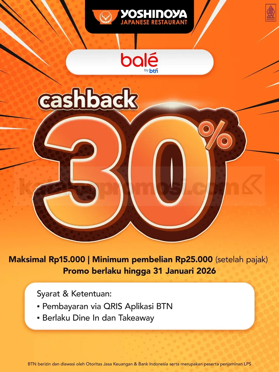 • Cashback 30% – BTN Balé (hingga 31 Jan 2026, min. Rp25.000, dine in & takeaway).
