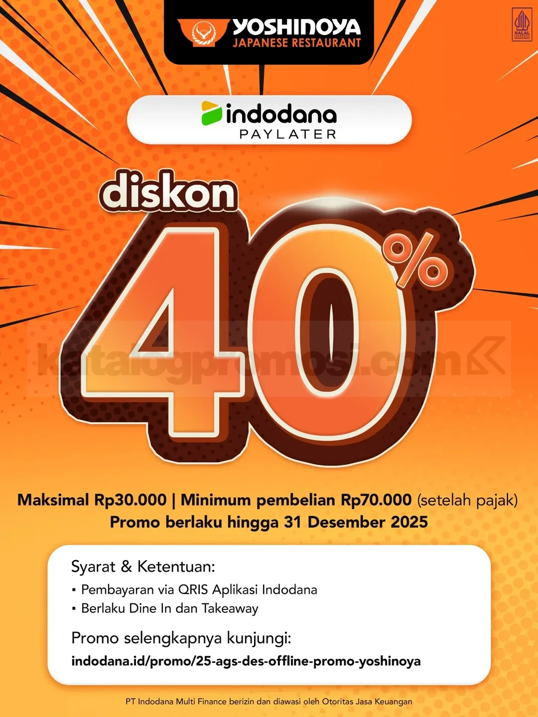 • Diskon 40% – Indodana Paylater (hingga 31 Des 2025, min. Rp70.000, dine in & takeaway).