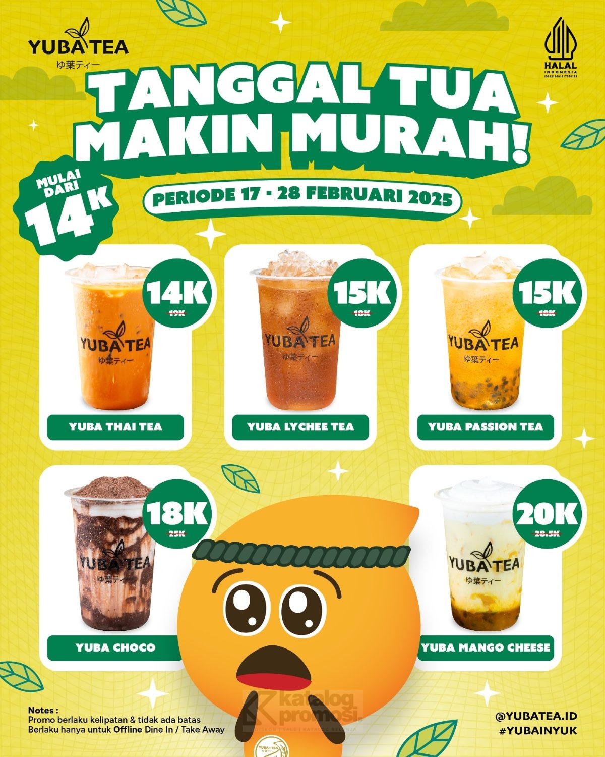 Promo Yuba Tea Tanggal Tua! Nikmati minuman mulai Rp14 ribuan hanya di Yuba Tea Store! Berlaku dine-in & take-away dari 17 – 28 Februari 2025!
