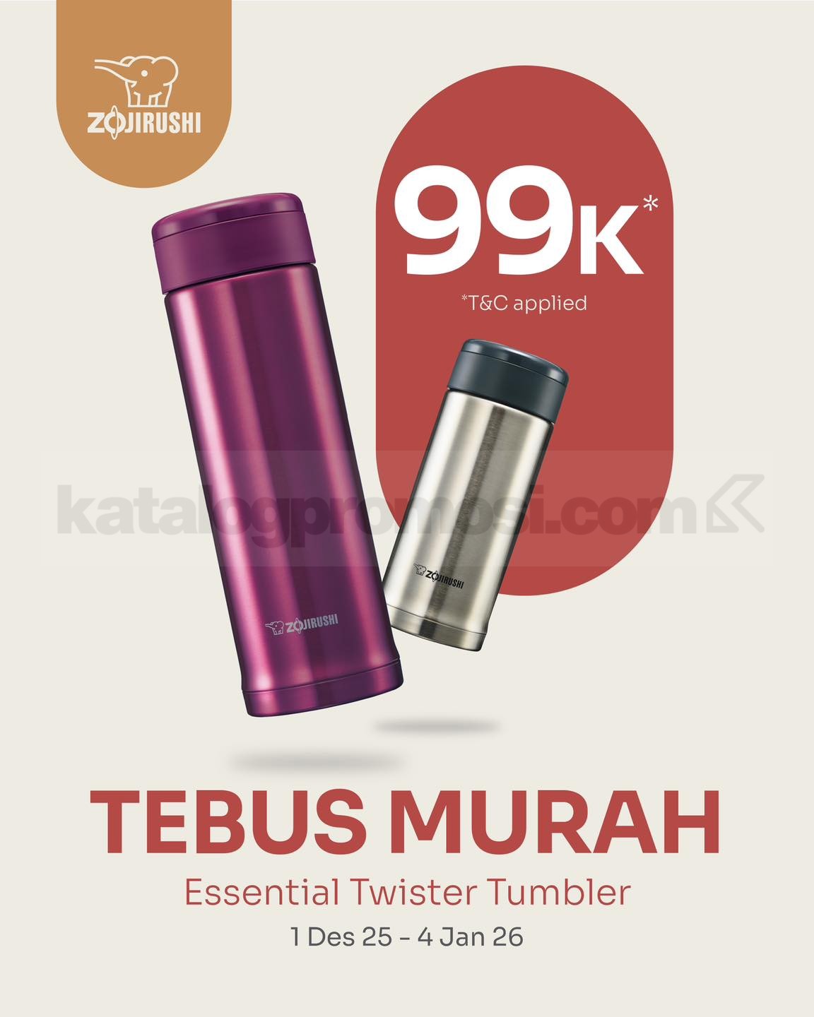 Promo Zojirushi Year End Sale diskon 20–35% dan tebus tumbler Rp. 99.000 berlaku 1 Desember 2025–4 Januari 2026 di store Zojirushi terdekat.