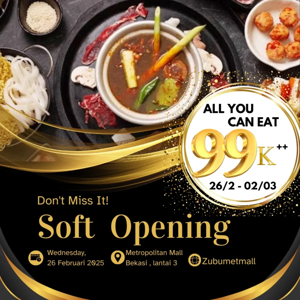 👉 Cek gambar promo ZUBU Happy Hour AYCE Rp99.000 di Blok M Plaza 20–22 Mei 2025 di bawah ini untuk lihat detail daging dan pilihan buffet-nya!