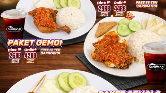Promo Pak Gembus Paket Hemat Jogja mulai Rp. 23.000 menu ayam gepuk lengkap nasi sambal lalapan dan teh manis berlaku selama periode promo di area Jogja.
