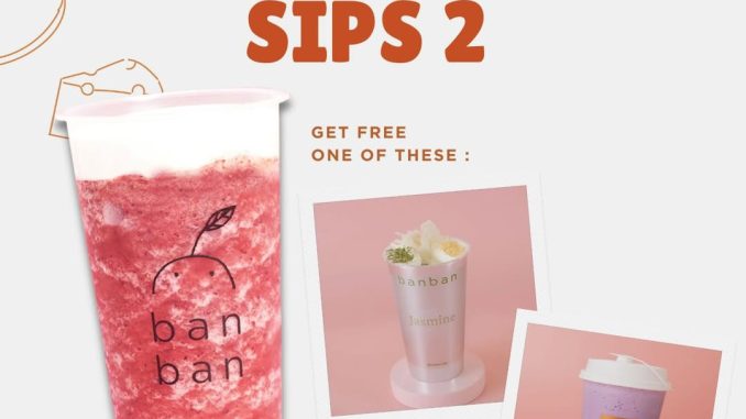 Promo Ban Ban Januari Deals Buy 1 Sips 2 beli Fruit Tea gratis Jasmine Milk Tea atau Mochi Taro, berlaku setiap Rabu selama Januari 2026 di outlet Ban Ban
