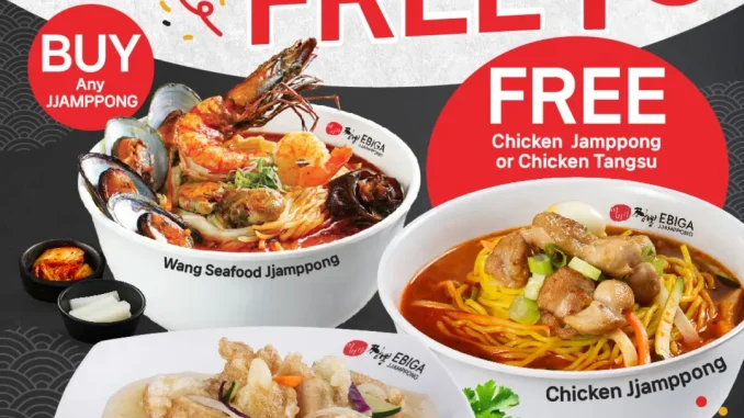 Promo Ebiga Jjamppong Buy 1 Any Jjamppong Free 1 Chicken Jjamppong Berlaku mulai tanggal 13-17 Oktober 2025.