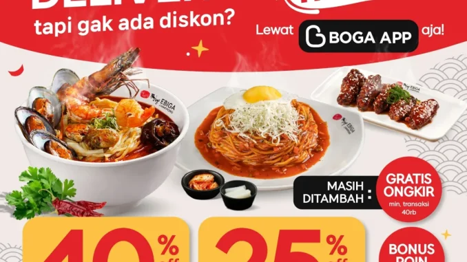 Promo Ebiga Jjamppong Tap Tap Delivery Diskon hingga 40% untuk pengguna baru dan diskon 25% pengguna setia via Boga App berlaku selama program Tap Tap Delivery di aplikasi Boga App berlangsung.