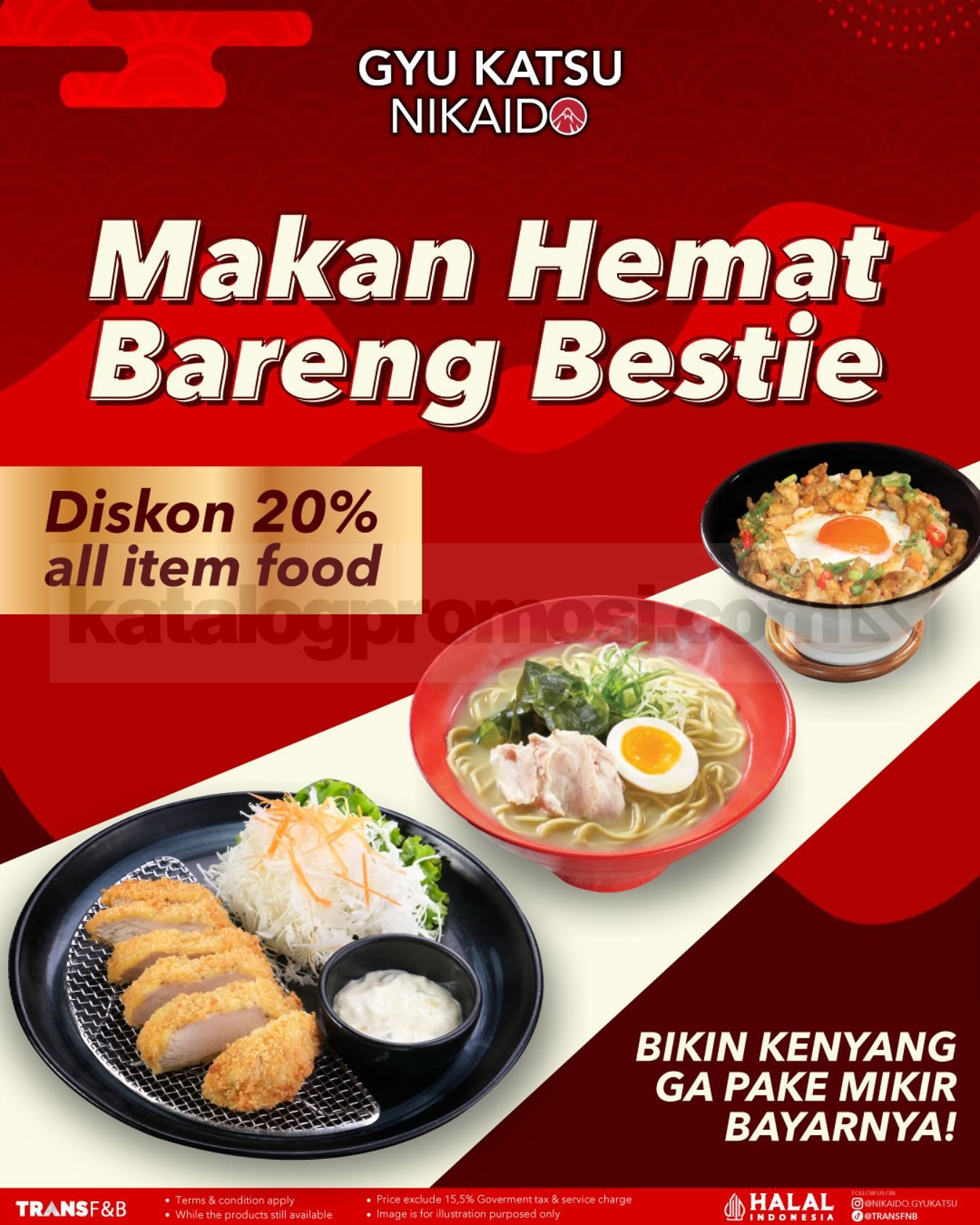 Gyu Katsu Nikaido Promo Gyu Katsu Nikaido Diskon 20% untuk Semua Menu Makanan April 29, 2025 Promo Gyukatsu Nikaido Diskon 20% untuk semua menu makanan, minimal belanja Rp150.000. Ajak bestie makan hemat sekarang!