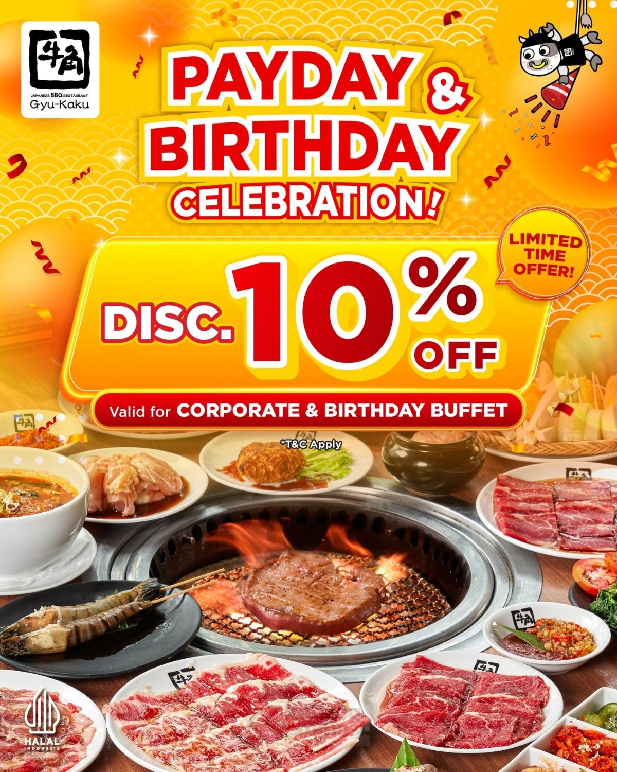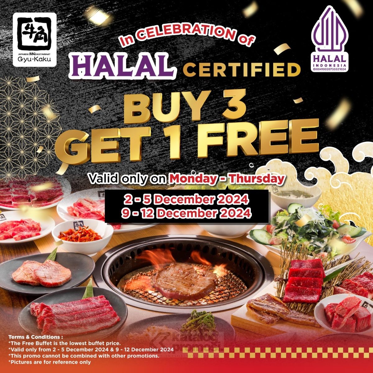 Promo Gyu-Kaku BNI Beli 3 Bonus 1 Buffet menawarkan bonus 1 pax buffet untuk setiap pembelian 3 pax dengan pembayaran kartu BNI, berlaku mulai tanggal 15 – 17 Desember 2025 di lokasi tertentu.