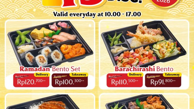 Promo Kappa Sushi Super Deals Bento Diskon 15% untuk Take Away & Delivery, nikmati harga spesial berlaku mulai tanggal 23 Februari 2026 – 19 Maret 2026.