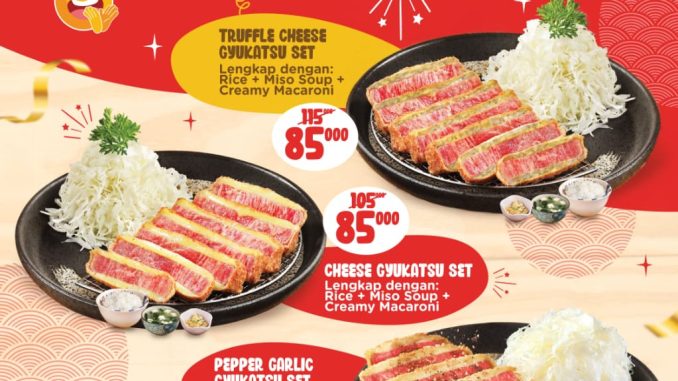 Kimukatsu Promo Kimukatsu Gyukatsu Mantappu Set Rp. 125.000 September 22, 2025 Promo Kimukatsu Gyukatsu Mantappu Set Rp. 125.000 paket lengkap Gyukatsu Cheese Set + karaage + minum berlaku selama periode promo berlangsung di seluruh outlet.