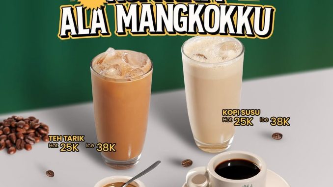 Promo Mangkokku Buy 1 Get 1 Minuman Rp.38.000 untuk Kopi Susu dan Teh Tarik, berlaku selama persediaan masihada di seluruh outlet pada jam tertentu.